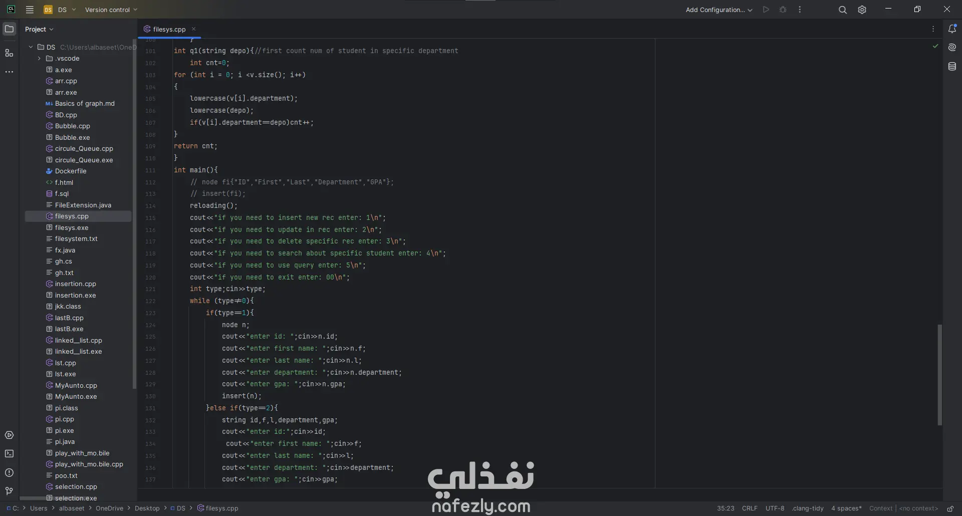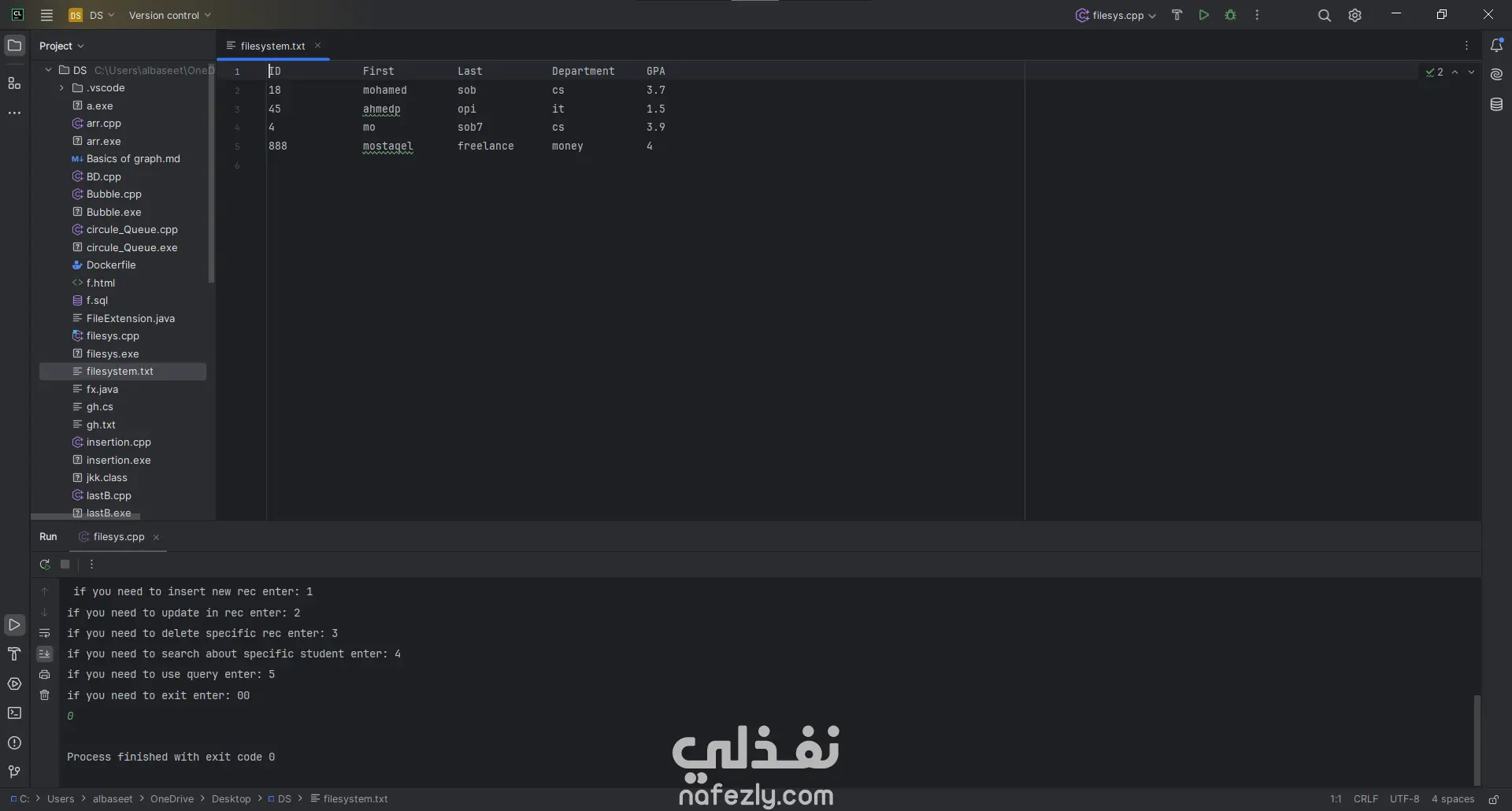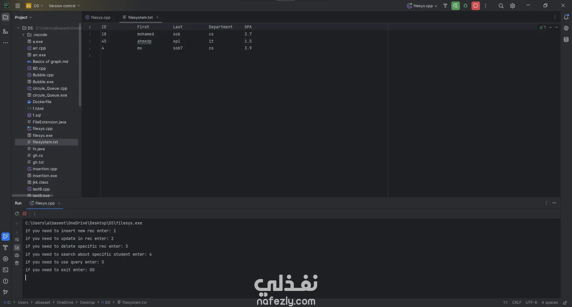 نظام إدارة سجلات الطلاب (C++ File System)