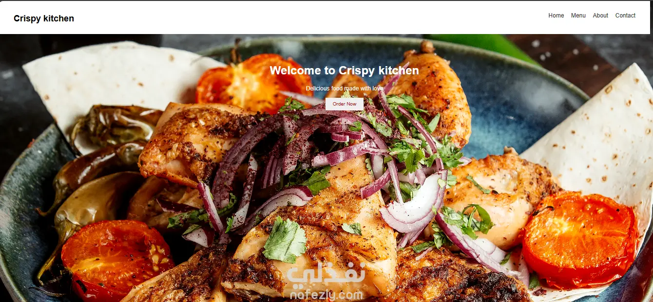 . We design a home page for restaurant with sticky navbar and small menu and contact us