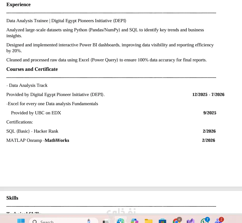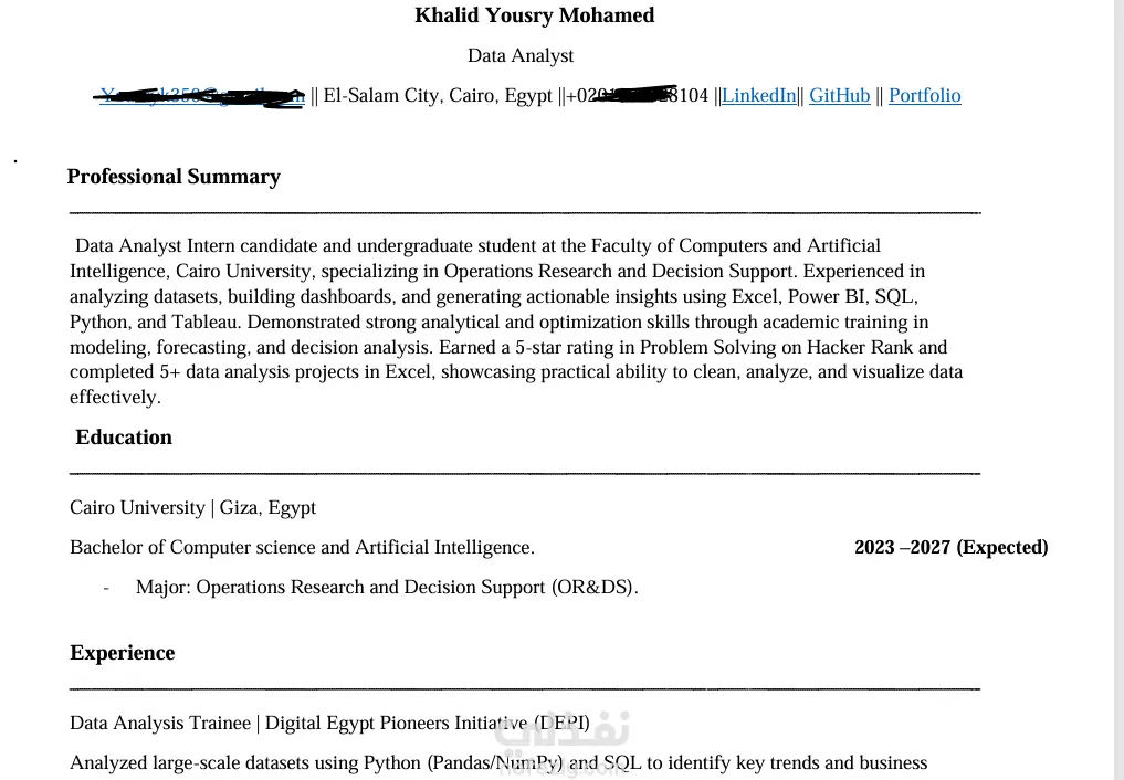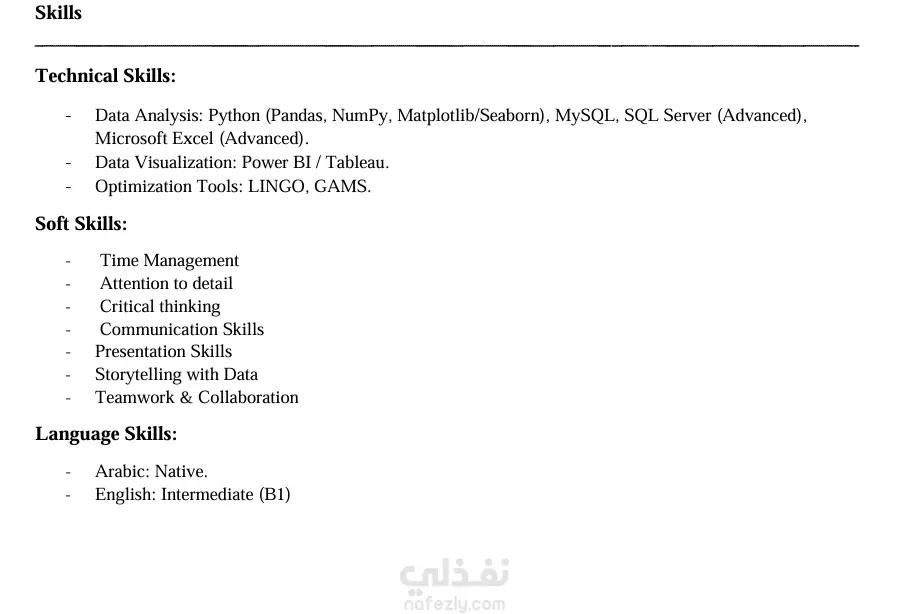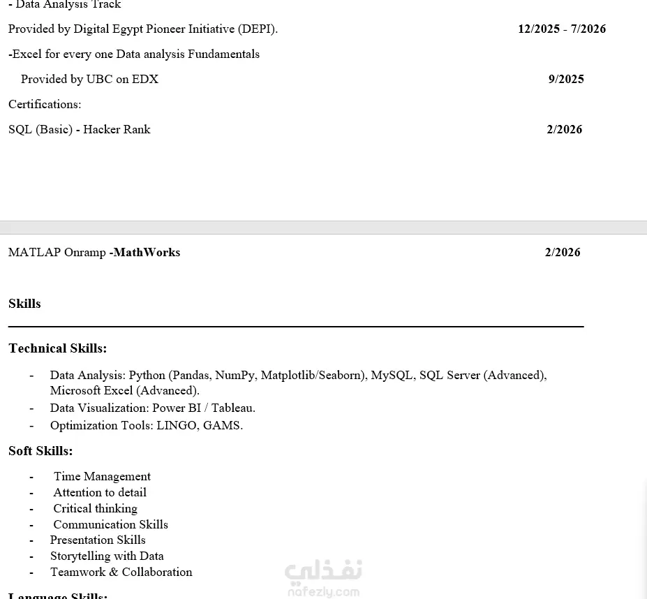 هل تعلم أن السيرة الذاتية هي "البوابة الأولى" التي تفصل بينك وبين وظيفة أحلامك؟ الكثير من الكفاءات تُرفض ليس لقلة خبرتها، بل لأن سيرتها الذاتية لا تقرأها أنظمة الفرز الآلي (ATS). بصفتي متخصصاً في تحليل البيانات ومطلعاً على معايير التوظيف التقنية والحديثة، سأقوم بصياغة سيرتك الذاتية بأسلوب احترافي يبرز نقاط قوتك ويجعلها تخطف أنظار مسؤولي التوظيف من الوهلة الأولى. مقابل 5$ فقط، ستحصل على الآتي: كتابة وتصميم صفحة واحدة من السيرة الذاتية (باللغة العربية أو الإنجليزية). تنسيق احترافي متوافق مع أنظمة الـ ATS لضمان عبور الملف من الفحص الآلي. صياغة محتوى بيعي يركز على الإنجازات والمهارات التقنية (Keywords) الخاصة بمجالك. عدد التعديلات المتاحة: متاح تعديلان مجانيان على العمل لضمان رضاك التام. التسليم: ملف بصيغة PDF جاهز للطباعة وللتقديم الإلكتروني.