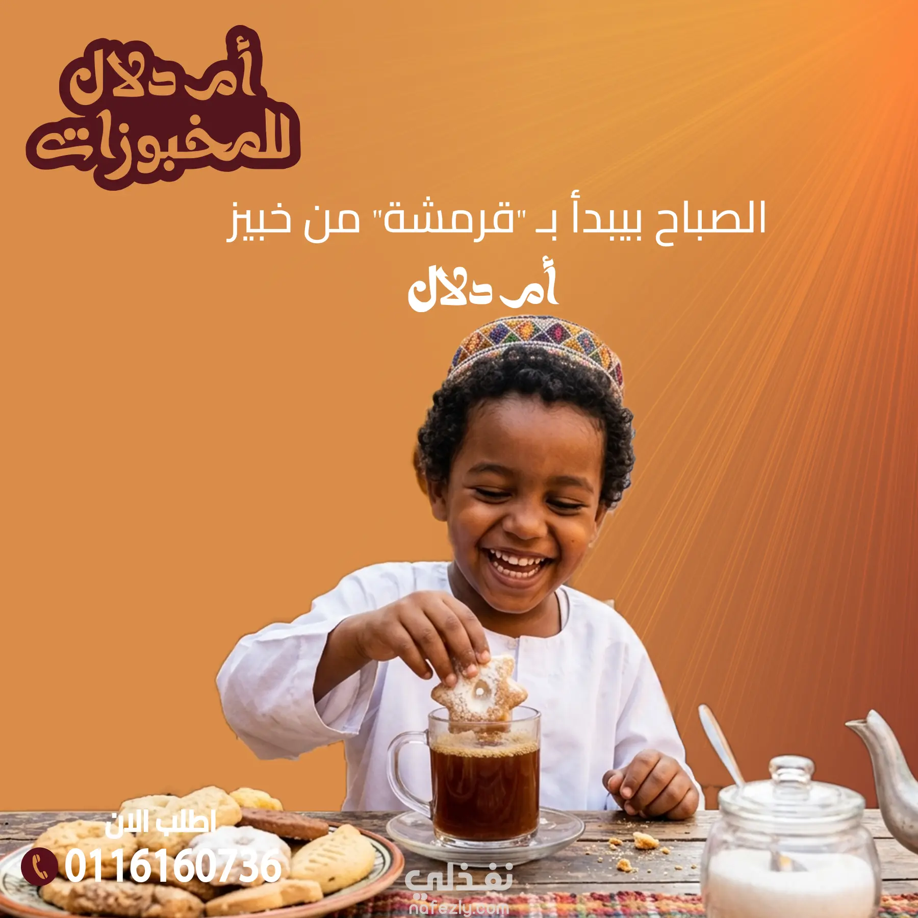 يُعد شعار أم دلال للمخبوزات نموذجاً مثالياً للهوية البصرية التي تدمج بين الأصالة والدفء يعتمد التصميم بالكامل على الحروف العربية (Typography) بأسلوب عصري يحاكي الطبيعة العضوية للمخبوزات