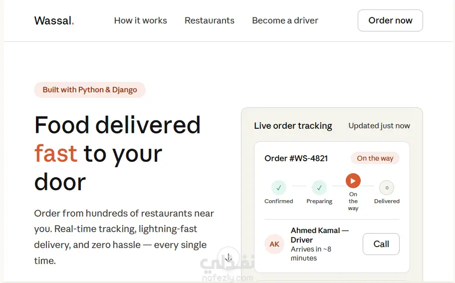 لاندينج بيج لتطبيق توصيل الطعام — Wassal