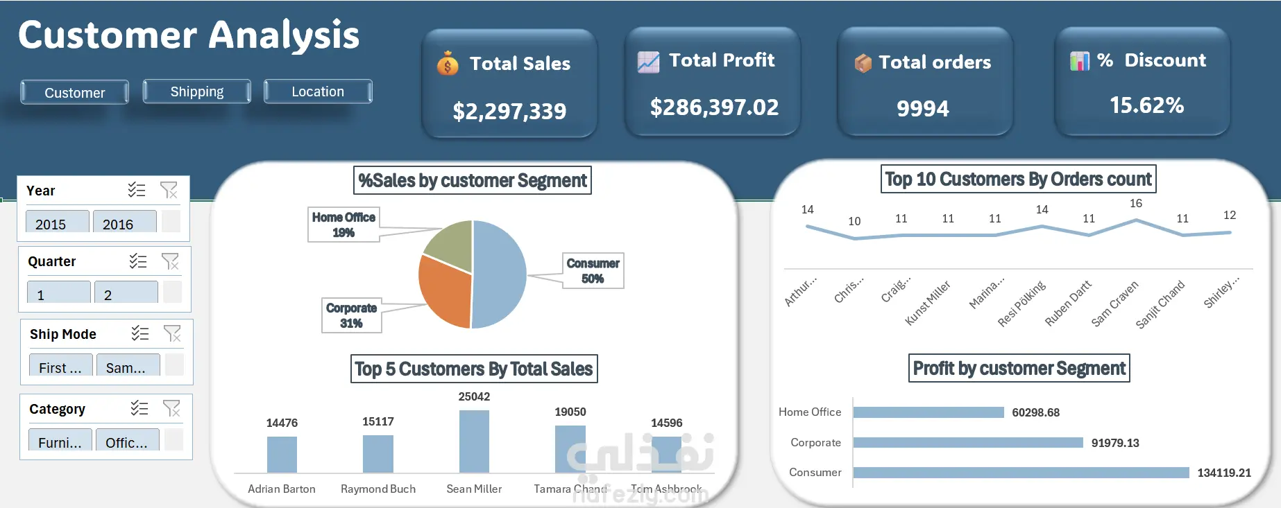 هذا المشروع عبارة عن لوحة تحكم تحليلية تفاعلية تم تطويرها باستخدام Excel بهدف تحليل أداء المبيعات والربحية عبر عدة أبعاد مختلفة تشمل: الزمن، المناطق الجغرافية، خطوط المنتجات، وشرائح العملاء. يهدف المشروع إلى توفير رؤية واضحة تساعد على فهم الأداء التجاري بشكل أعمق، ودعم اتخاذ القرارات الاستراتيجية المبنية على البيانات. تم تنفيذ المشروع باستخدام أدوات تحليل بيانات احترافية تشمل: Power Query لتنظيف البيانات ومعالجتها Power Pivot لبناء نموذج بيانات متكامل إنشاء مؤشرات أداء رئيسية (KPIs) مثل: إجمالي المبيعات إجمالي الأرباح هامش الربح تحليل التكلفة مميزات المشروع: تحليل المبيعات والأرباح عبر الزمن تحليل أداء المناطق الجغرافية تحديد أفضل وأسوأ المنتجات أداءً تحليل شرائح العملاء حسب القيمة الشرائية مقارنة الأداء بين الفئات المختلفة استخراج اتجاهات وتحليلات تساعد على اتخاذ القرار الهدف من المشروع: تحويل البيانات إلى رؤى واضحة تدعم تحسين الأداء وزيادة الربحية، واكتشاف الفرص والمشكلات داخل البيانات بشكل مبكر.