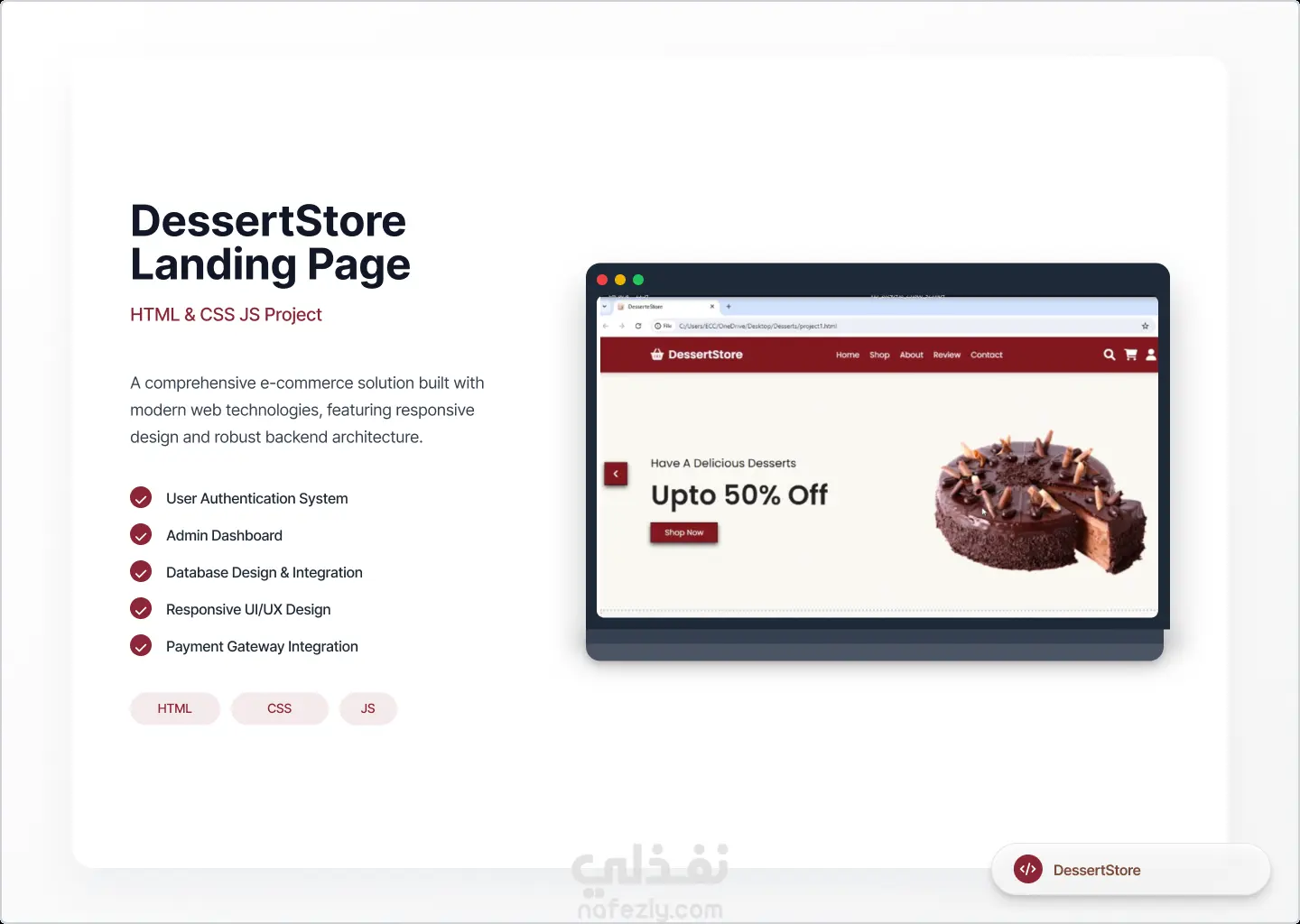 واجهة ويب عصرية وجذابة لمتجر حلويات، تم بناؤها بالتركيز على تجربة مستخدم (UX) سلسة وتصميم بصري (UI) احترافي يتناسب مع الهوية التجارية للمشروع.