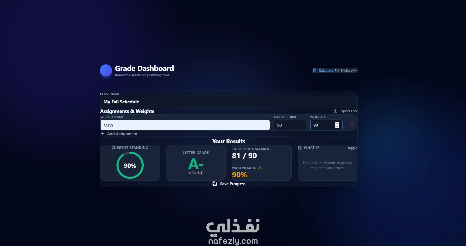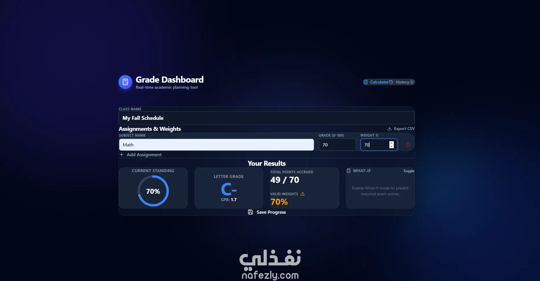 سأصمم لك Grade Calculator احترافي لطلاب الجامعة بواجهة جذابة وحساب دقيق 100%