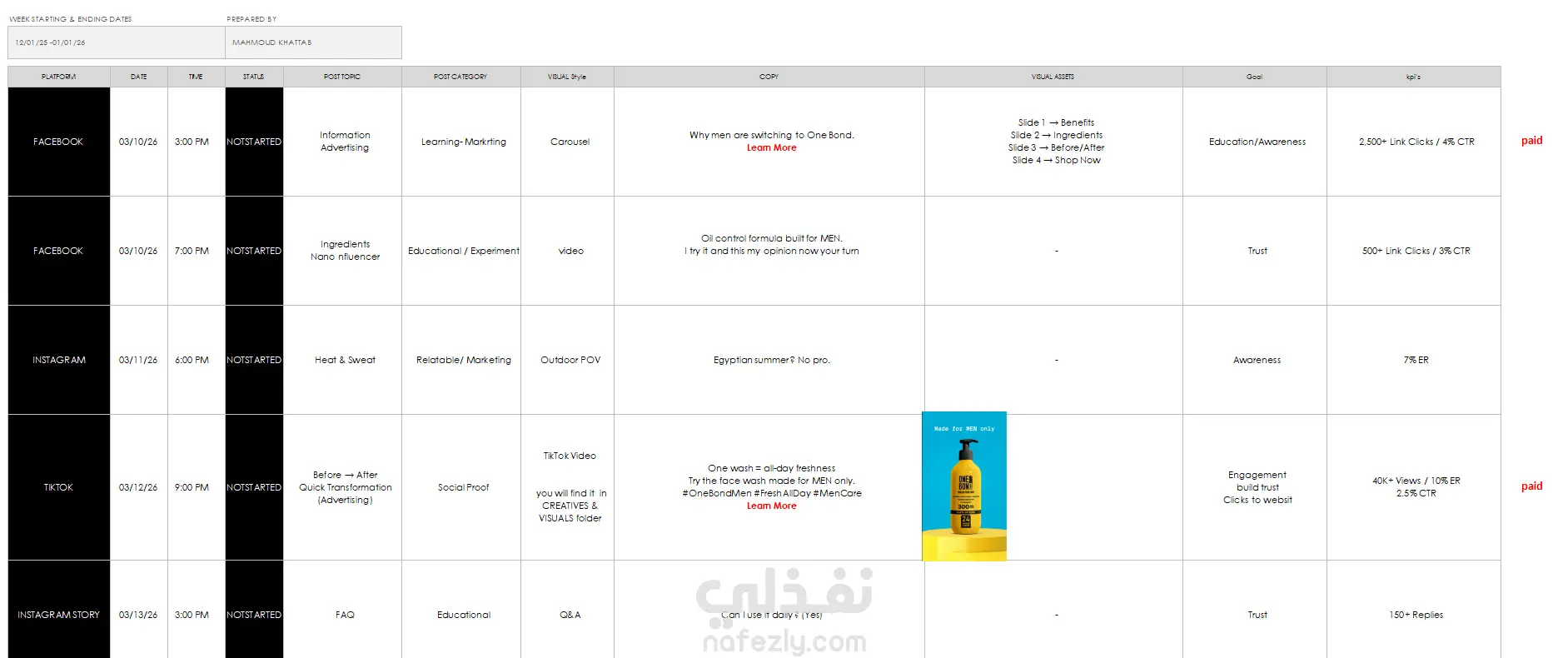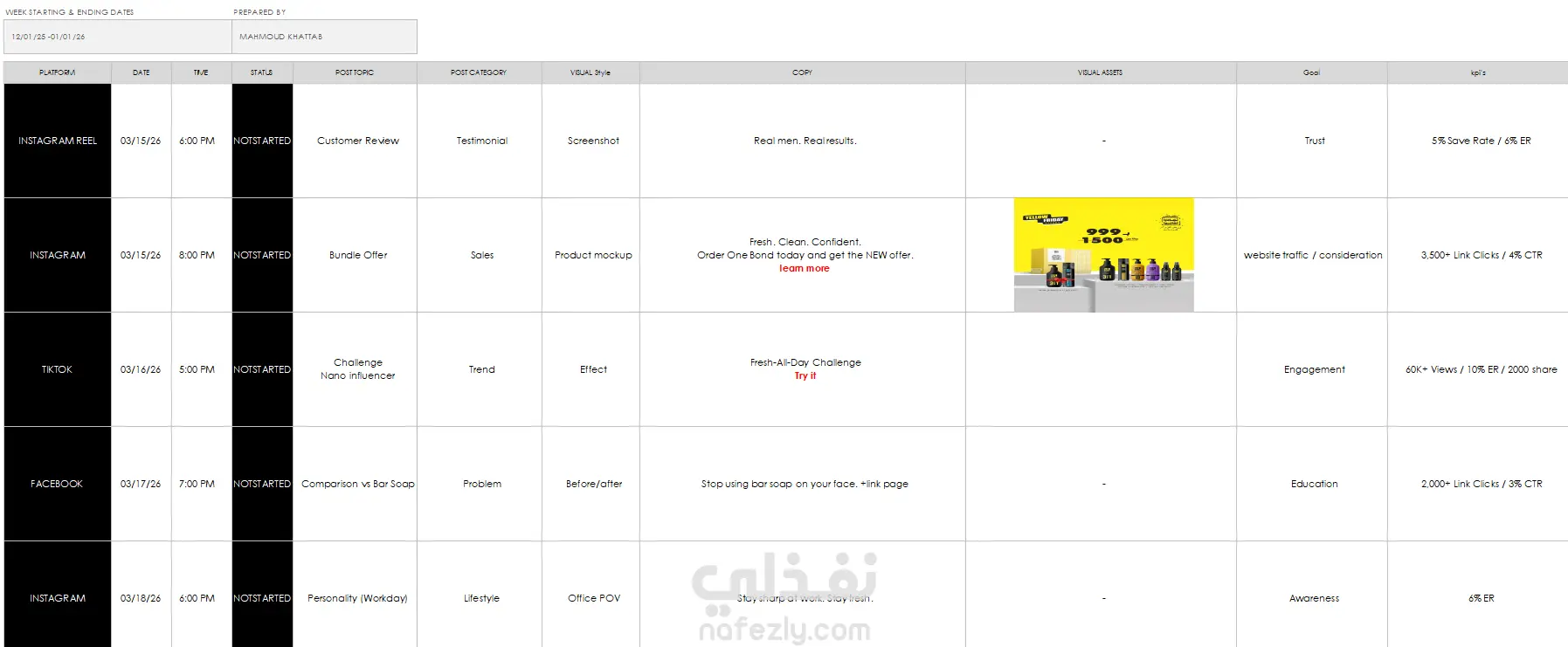 انشاء تقويم للمحتوي شهري لمنتج عناية شخصية للرجال