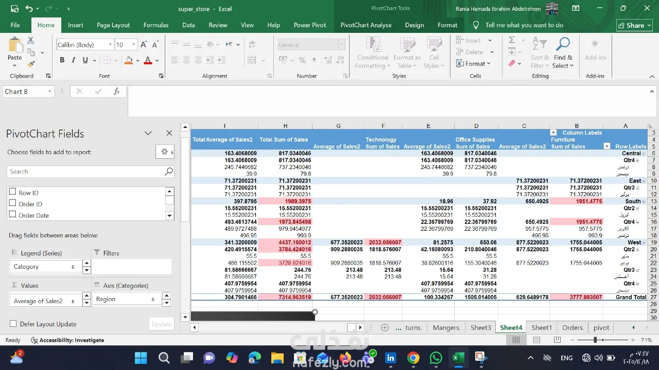 في هذا المشروع، ركزت على استخراج رؤى دقيقة من بيانات المتجر باستخدام الجداول المحورية (Pivot Tables) والرسوم البيانية المتقدمة، حيث قمت بـ: تحليل المبيعات الجغرافية: توزيع الأداء حسب المناطق (Central, East, South, West). المقارنة الكمية والنوعية: تحليل "إجمالي المبيعات" مقابل "متوسط المبيعات" لكل فئة منتجات (Furniture, Office Supplies, Technology). التحليل الزمني (Time-Series): تتبع الأداء الشهري والربع سنوي لاكتشاف فترات الذروة في المبيعات. التصور البياني (Advanced Charting): تحويل الجداول المعقدة إلى رسم بياني (Pivot Chart) يسهل عملية المقارنة البصرية بين متوسطات المبيعات وإجمالي المبيعات لكل قسم. القيمة المضافة: مساعدة الإدارة في معرفة أي المناطق والمنتجات تحقق أعلى متوسط مبيعات، وليس فقط أعلى إجمالي، للمساعدة في إعادة تخصيص الموارد التسويقية.