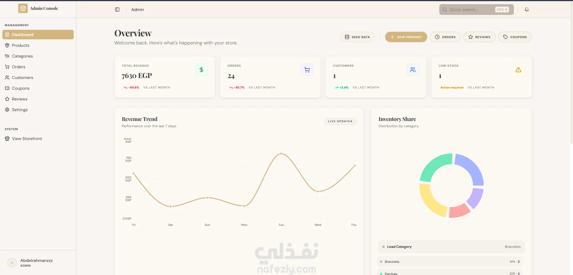 Nourae هو متجر إلكتروني حديث تم تطويره باستخدام React و Supabase، مع التركيز على الأداء وتجربة المستخدم والتصميم التفاعلي. يوفر المشروع تجربة تصفح سلسة وديناميكية من خلال ربط الواجهة الأمامية بقاعدة بيانات حقيقية عبر Supabase، مما يجعله نموذجًا عمليًا لمتجر إلكتروني متكامل. المميزات: - تصميم متجاوب يعمل على جميع الأجهزة - واجهة مستخدم حديثة ونظيفة - حركات وانتقالات سلسة - عرض المنتجات بشكل ديناميكي من قاعدة البيانات - إدارة البيانات باستخدام Supabase - تجربة مستخدم سريعة وسلسة التقنيات المستخدمة: - HTML5, CSS3,TypeScript - React - Supabase (Backend as a Service) - Tailwind CSS الهدف: بناء متجر إلكتروني حديث يجمع بين التصميم الجذاب والأداء العالي باستخدام تقنيات حديثة بدون الحاجة إلى Backend تقليدي. يعكس هذا المشروع القدرة على تطوير واجهات تفاعلية وربطها بأنظمة بيانات حقيقية بطريقة احترافية وقابلة للتوسعة.