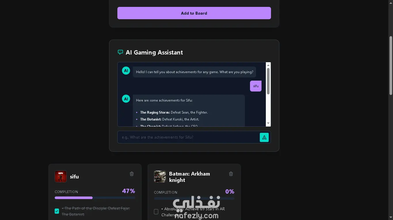 مساعد ذكي مدمج: دمج تقنية Gemini 2.5 Flash AI لتوفير دردشة ذكية تساعد المستخدم في معرفة أسرار الإنجازات وكيفية تخطي المراحل الصعبة.
