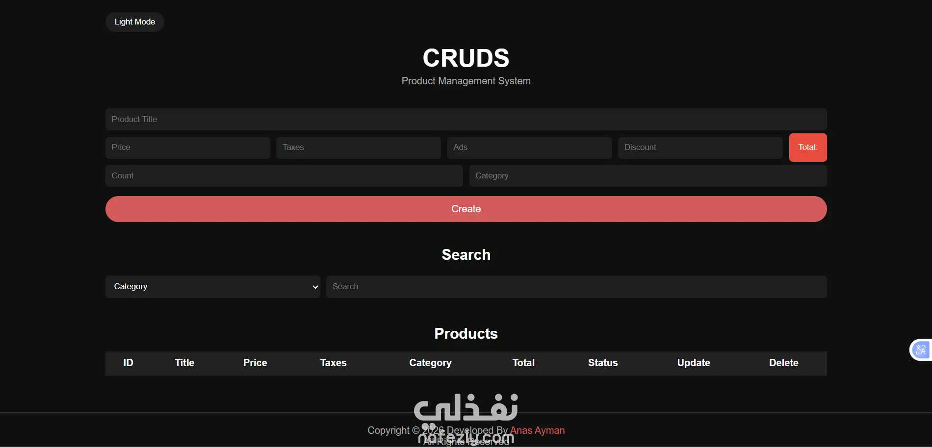 تصميم وتطوير نظام CRUD كامل باستخدام JavaScript (إضافة - تعديل - حذف - بحث)