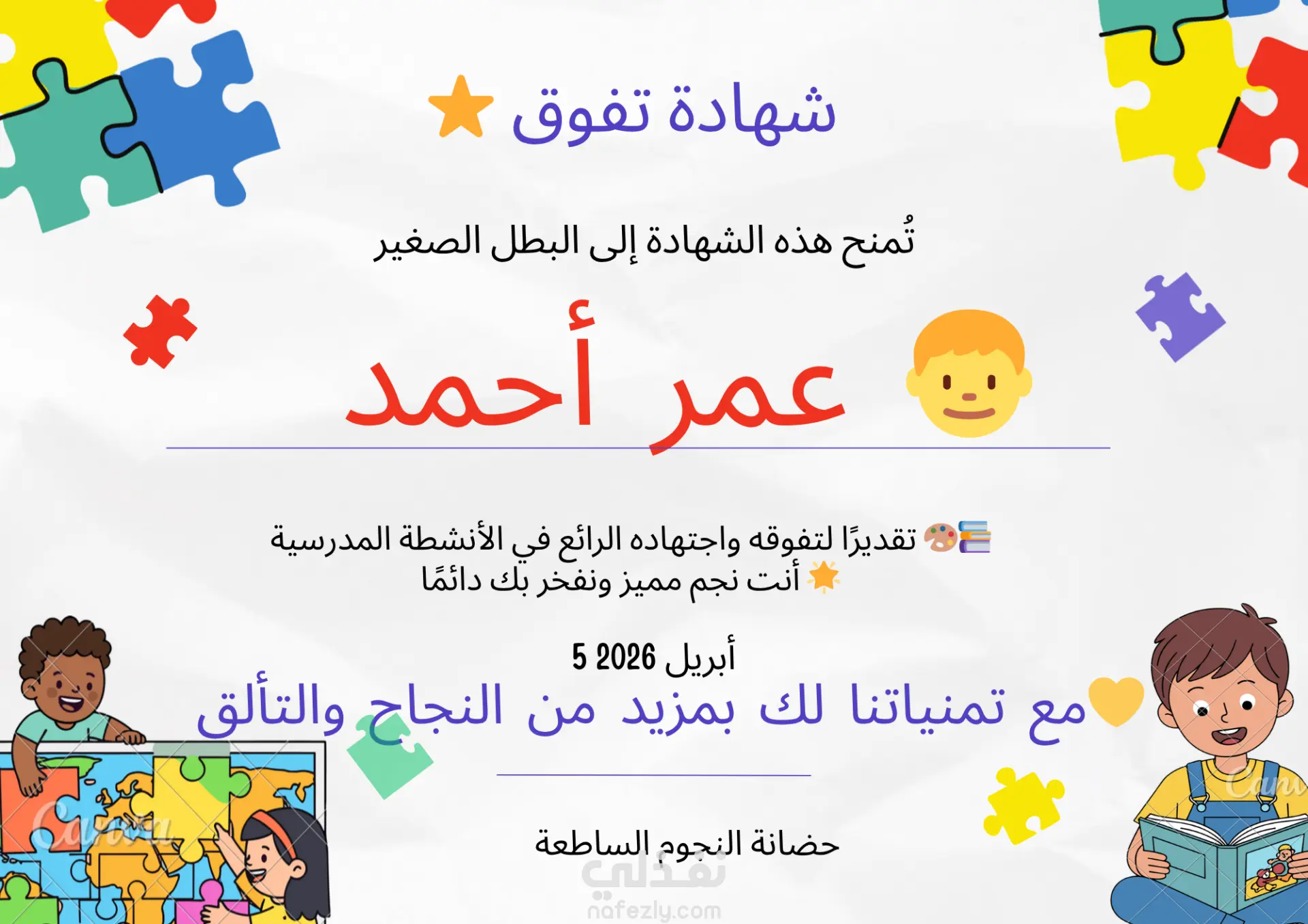 تصميم شهادات تقدير احترافية للأطفال بألوان مبهجة