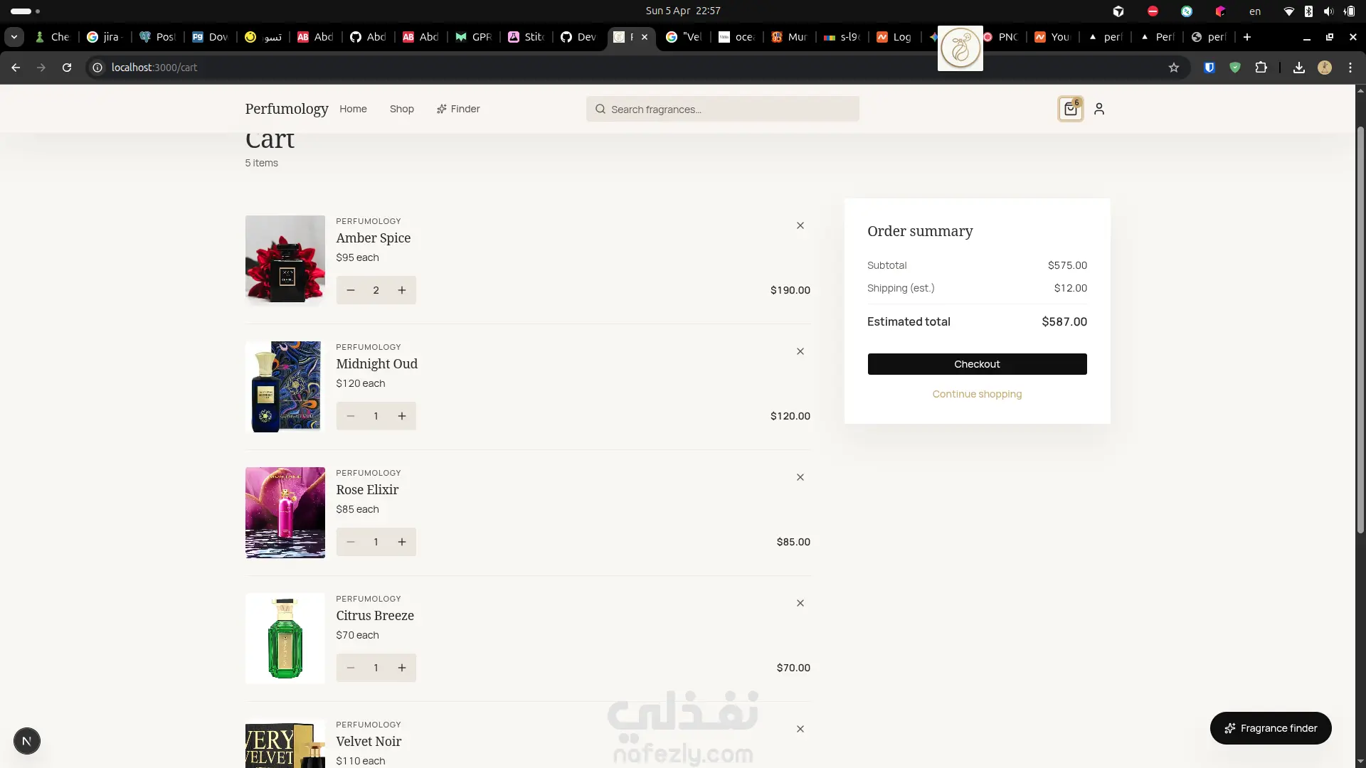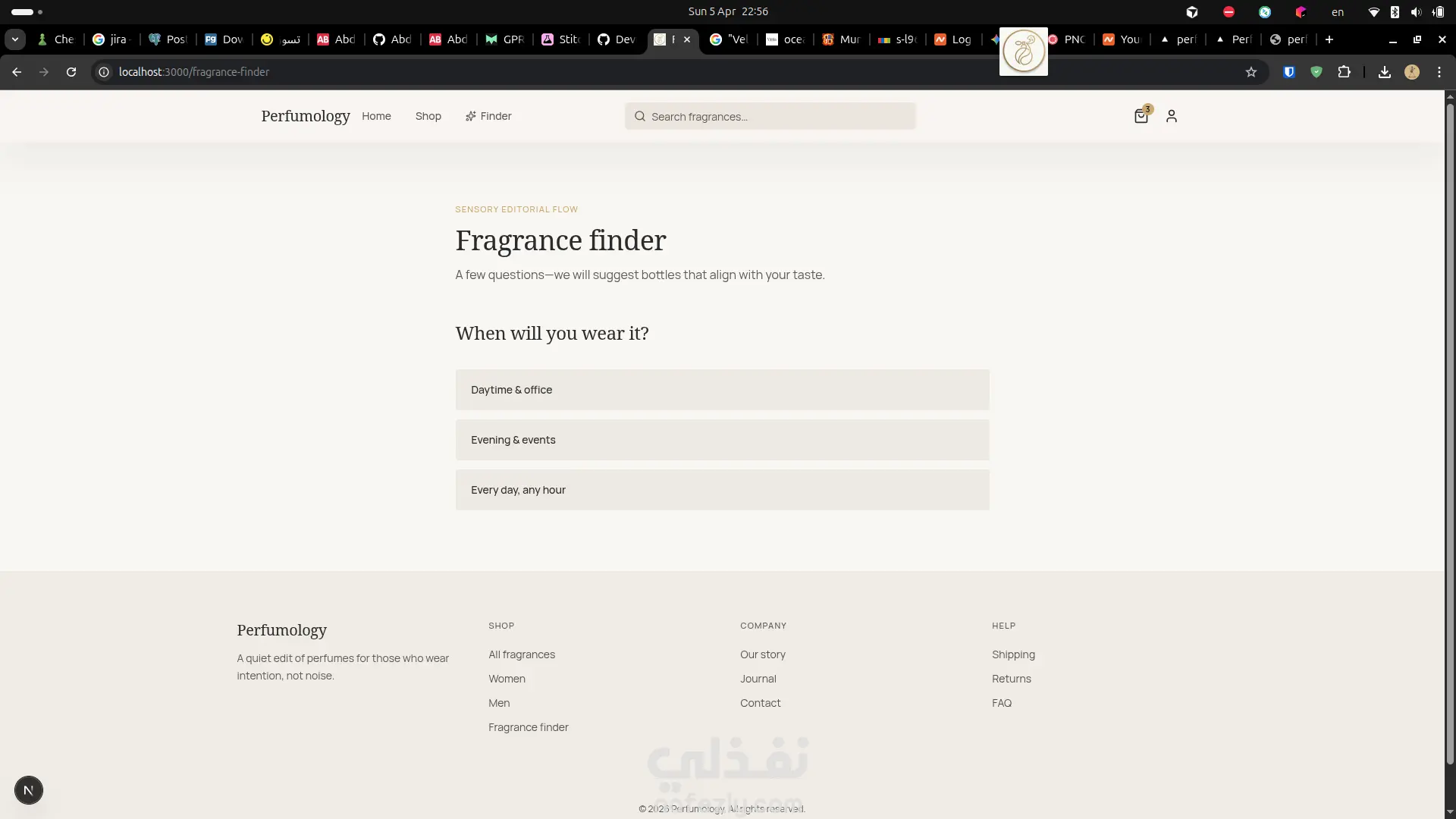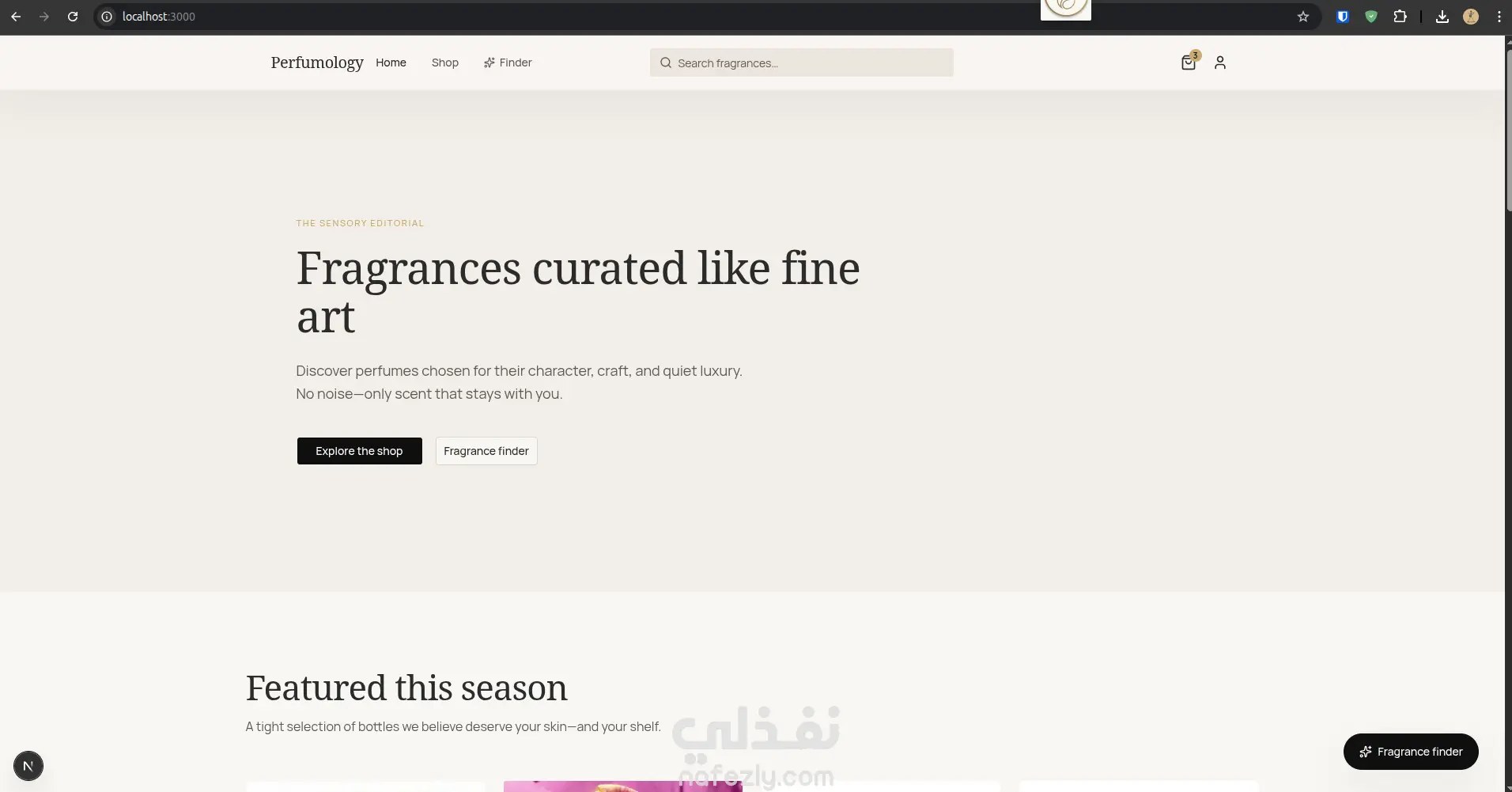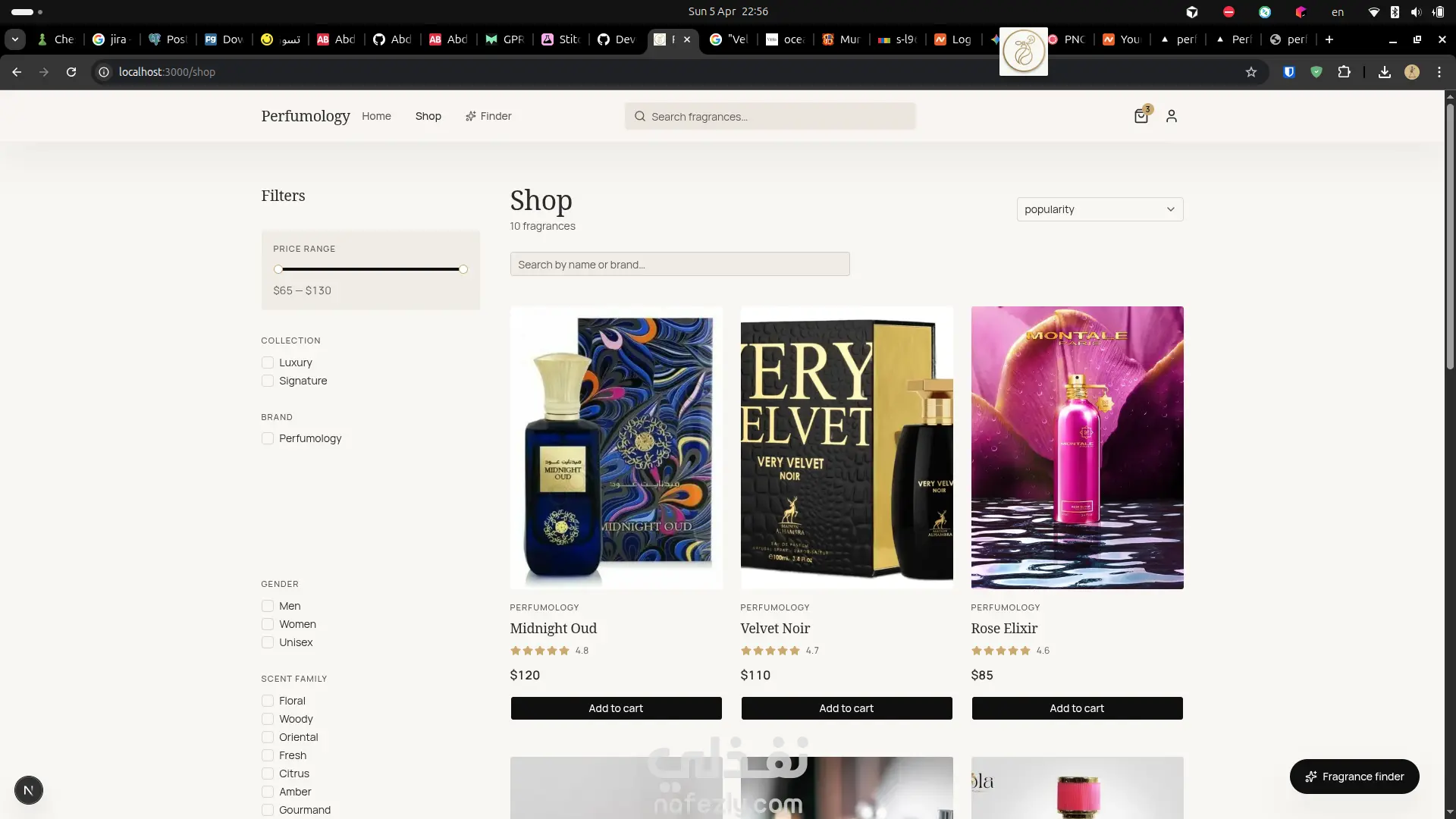 مشروع متجر إلكتروني متخصص في بيع العطور، تم تصميمه بواجهة عصرية وأنيقة تعكس الطابع الفاخر للعطور. يتيح الموقع للمستخدمين تصفح مجموعة متنوعة من العطور بسهولة، مع إمكانية البحث والتصفية حسب السعر، النوع، أو المكونات. يشمل المشروع صفحات رئيسية مثل الصفحة الرئيسية، عرض المنتجات، صفحة تفاصيل العطر، سلة المشتريات، ونظام تسجيل الدخول. كما يوفر تجربة مستخدم سلسة وسريعة الاستجابة على جميع الأجهزة. تم تطوير الواجهة باستخدام أحدث التقنيات مثل Next.js وTailwind CSS، مع التركيز على الأداء العالي وتجربة المستخدم المميزة، وإمكانية التوسع مستقبلاً بإضافة نظام دفع وإدارة الطلبات.