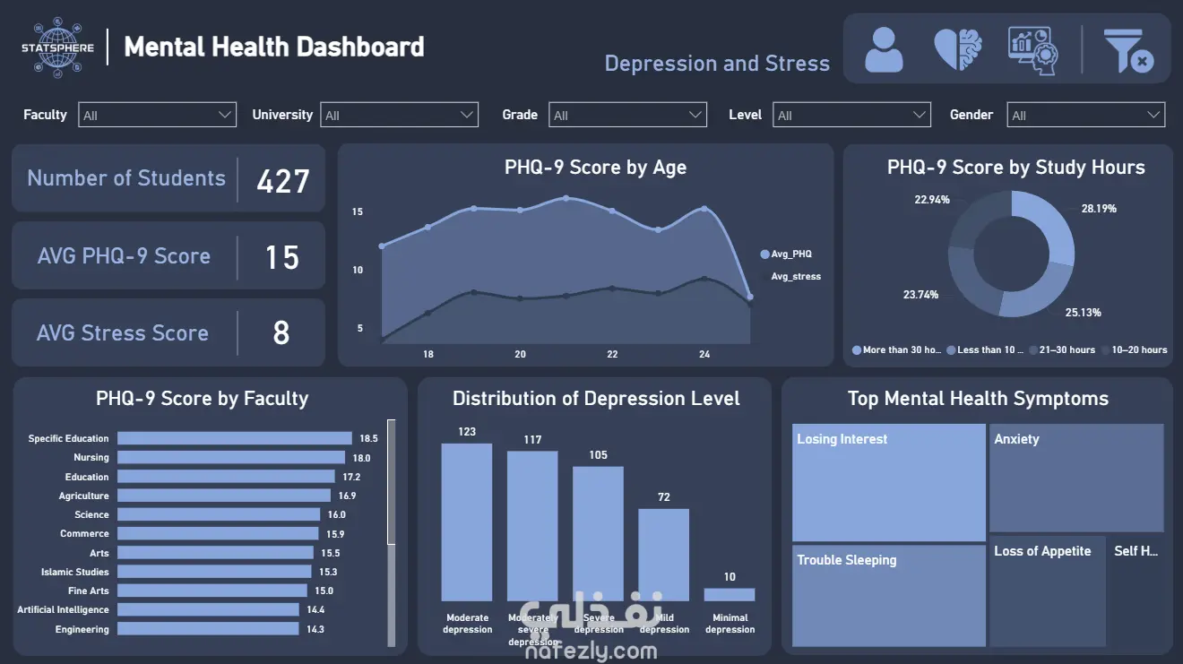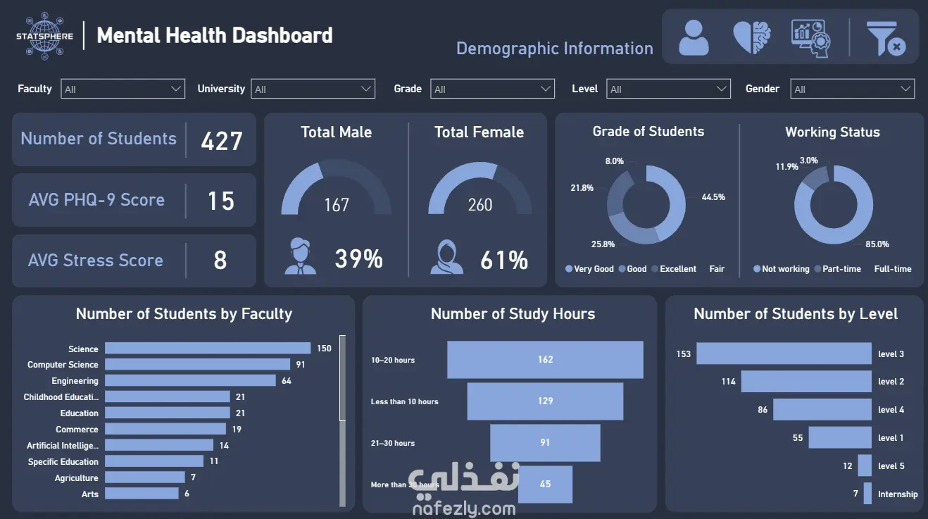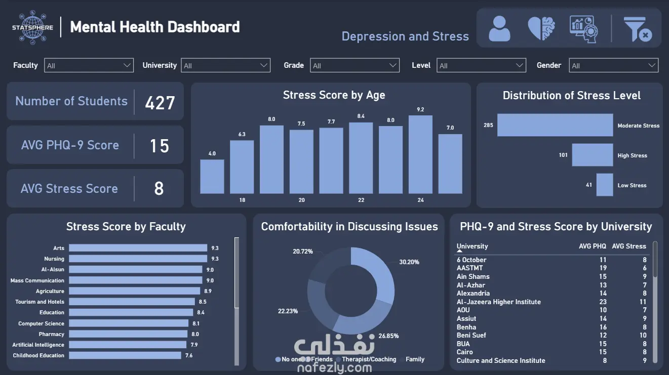داشبورد لتحليل صحه النفسية لطلبة الجامعات بإستخدام Power BI