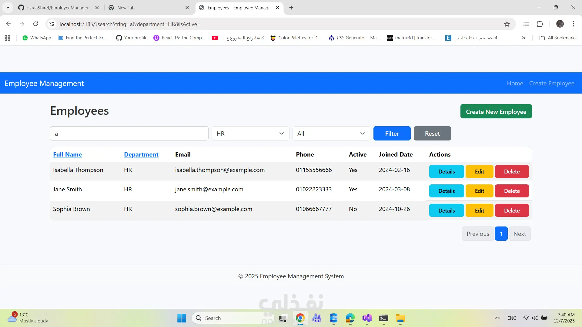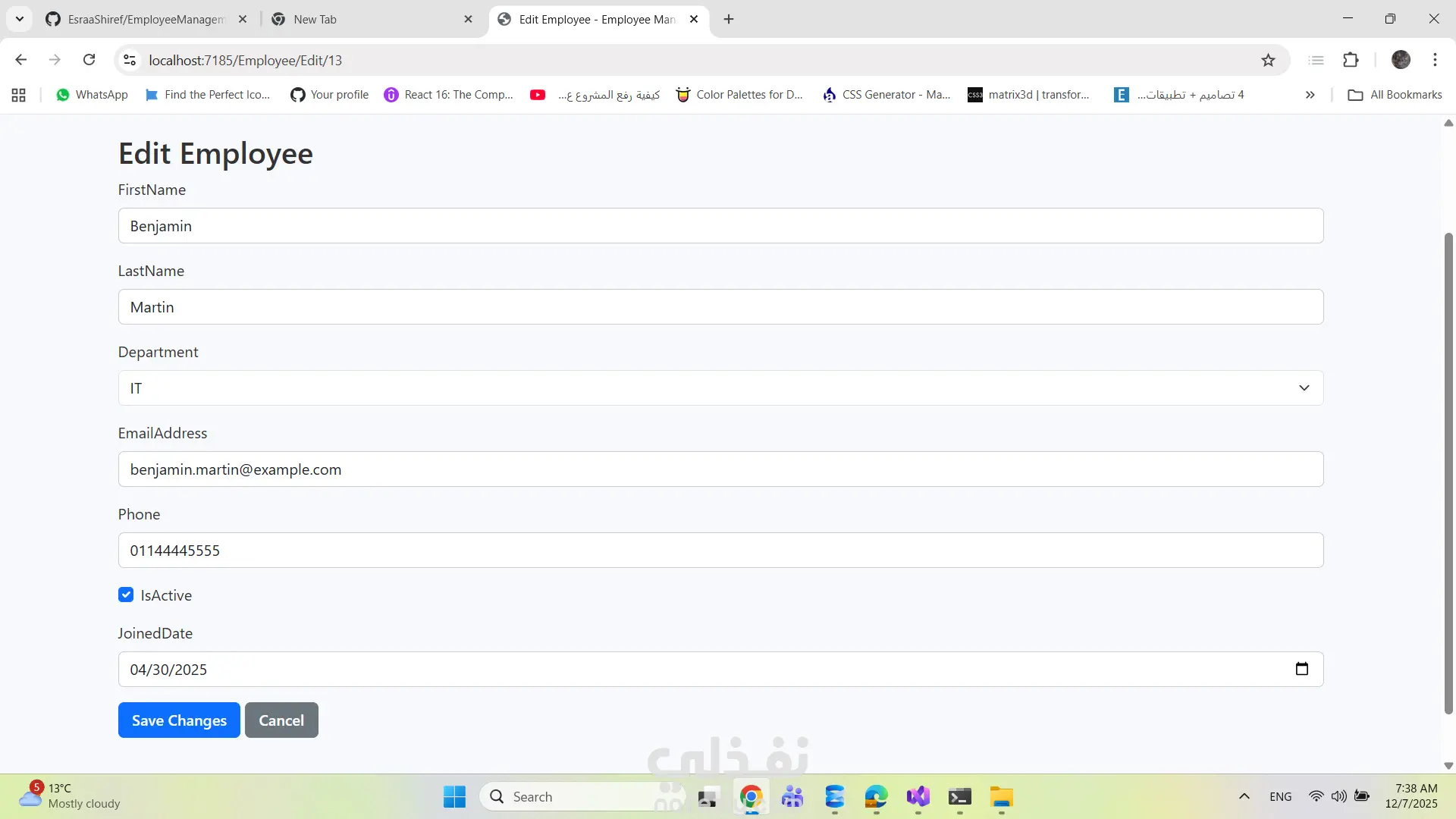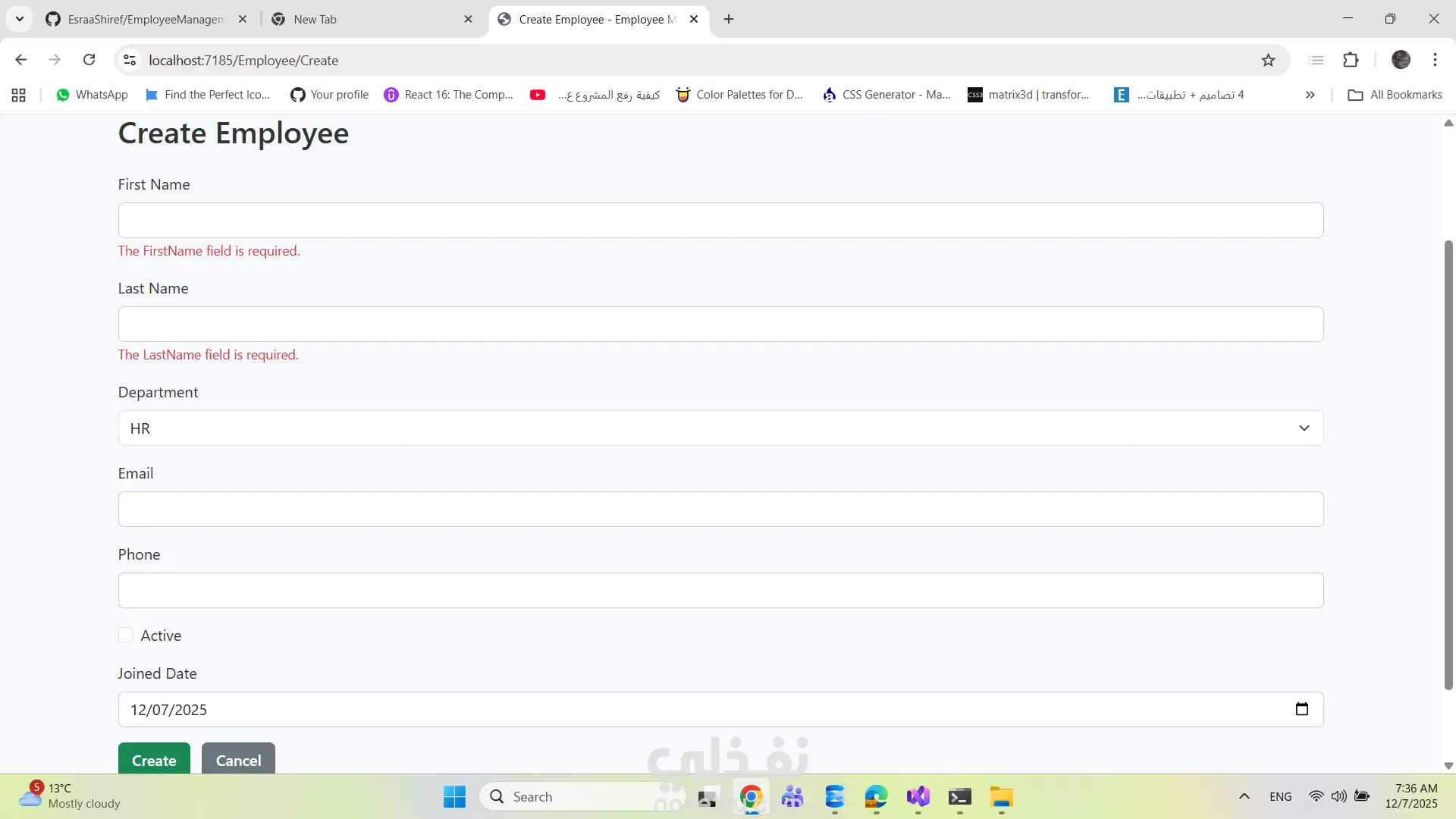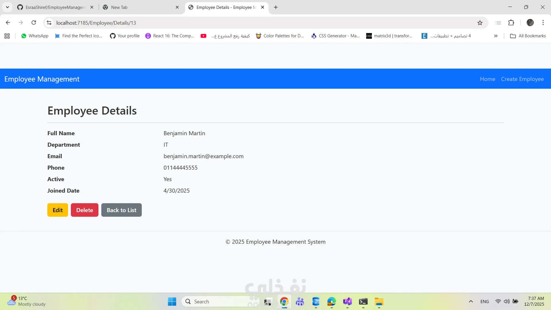 مشروع مبني باستخدام ASP.NET Core 8 MVC وEntity Framework Core. يعرض المشروع تطبيق CRUD أساسيًا مع التركيز على مهارات تطوير الواجهة الأمامية والخلفية، بما في ذلك التحقق من صحة البيانات، ومعالجة واجهة المستخدم، وأفضل ممارسات .NET.