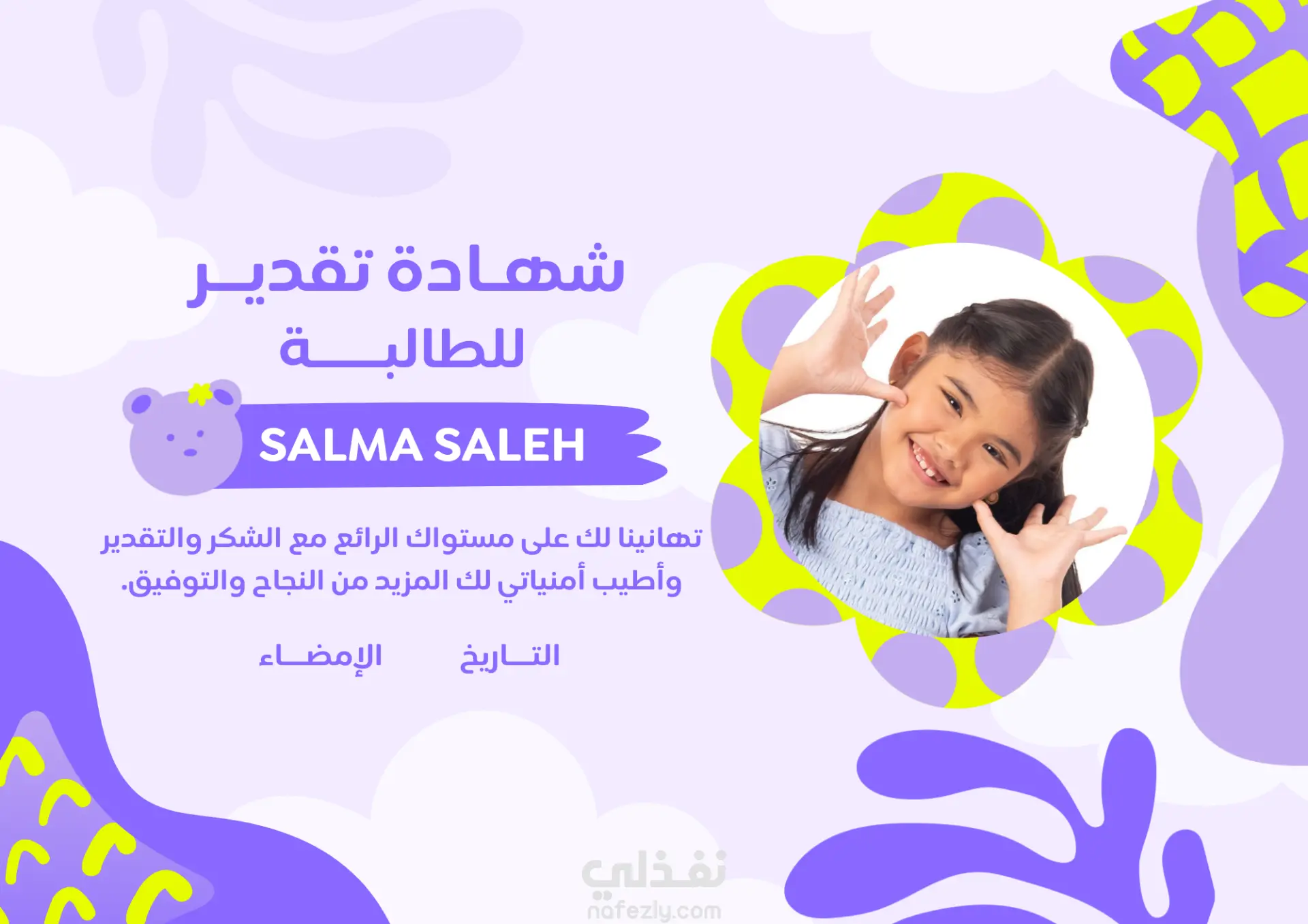 تصميم وتنفيذ شهادات تقدير للاطفال
