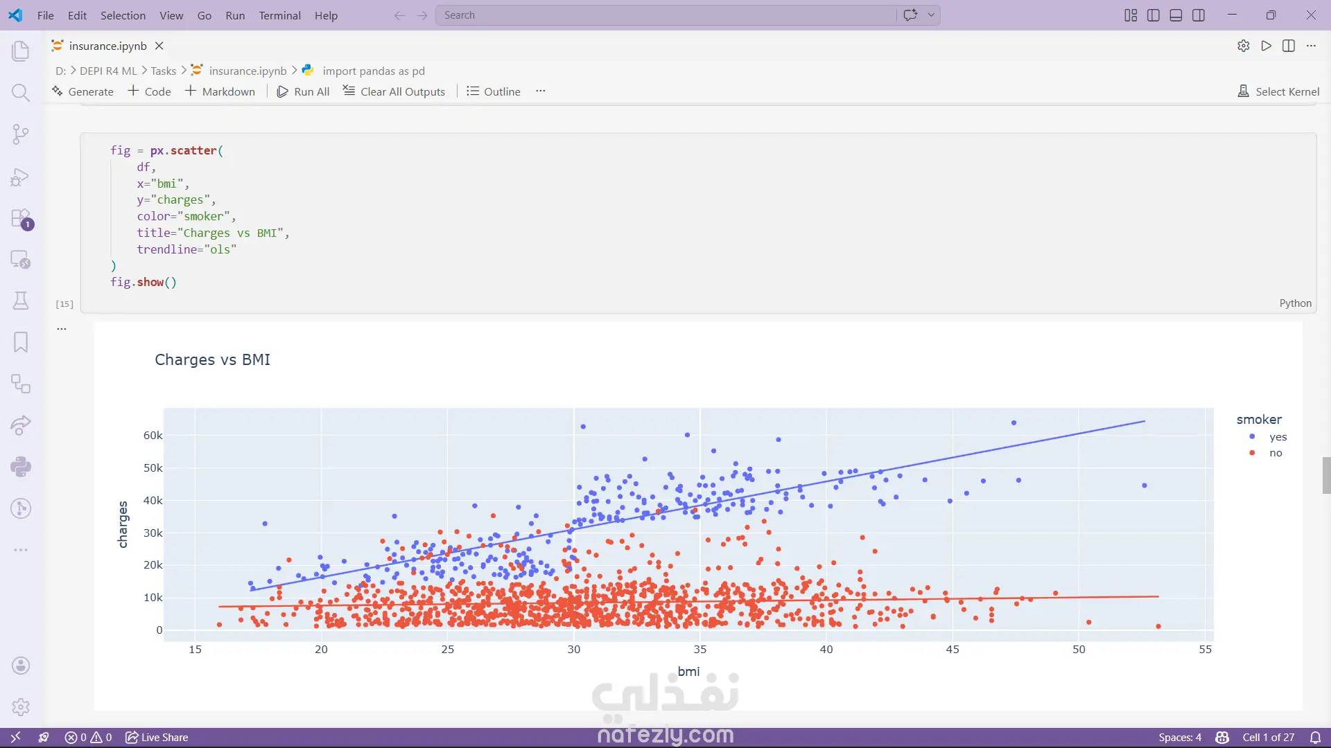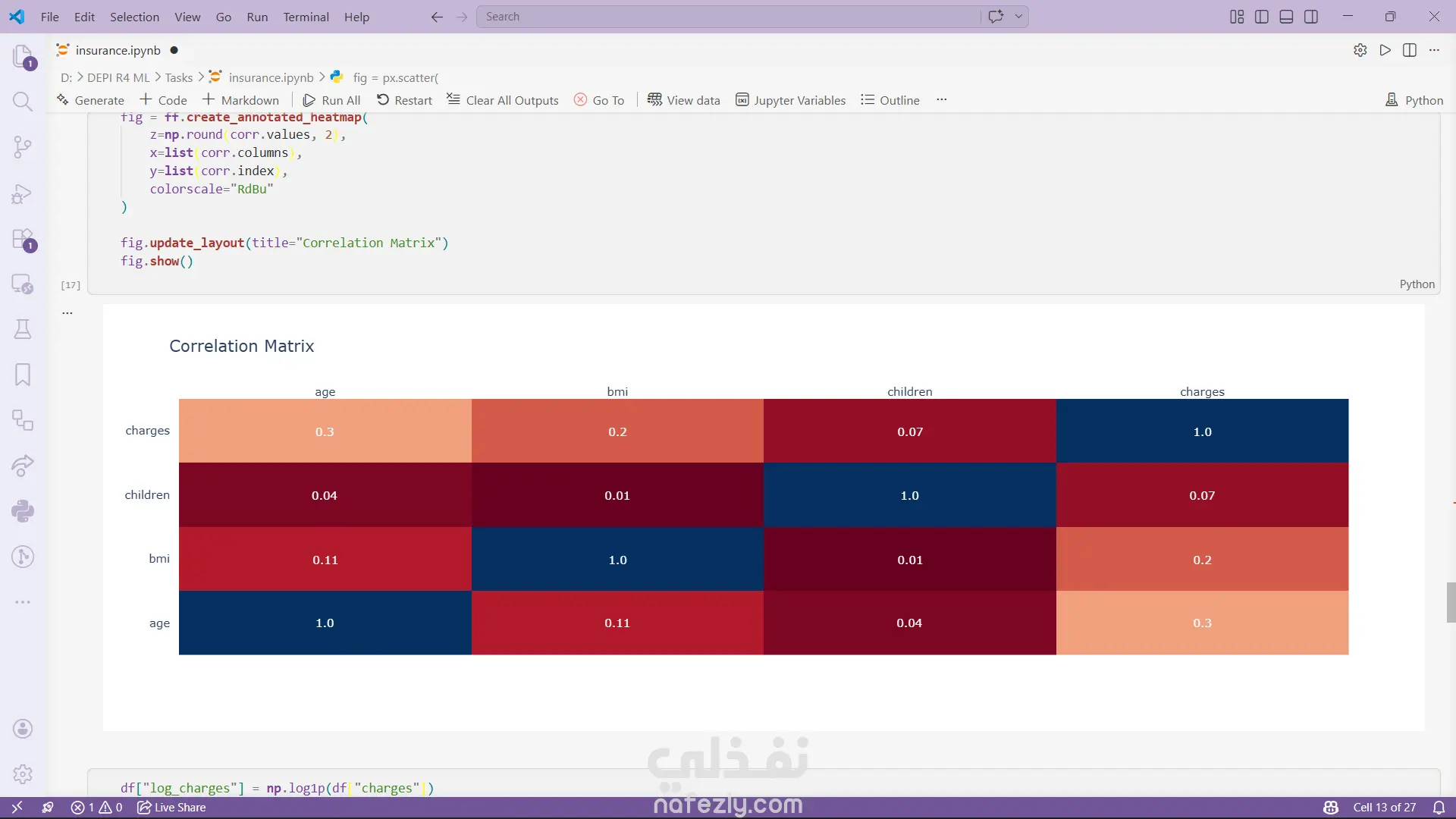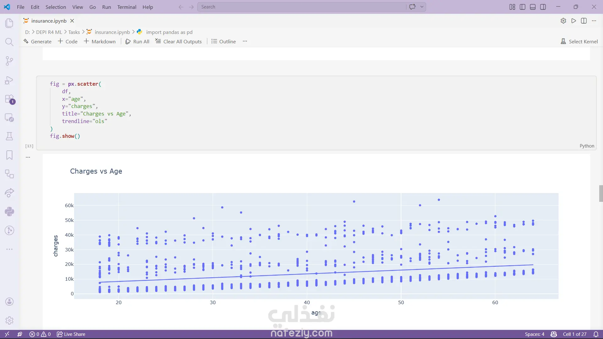 نموذج تعلم آلة للتنبؤ بتكاليف التأمين