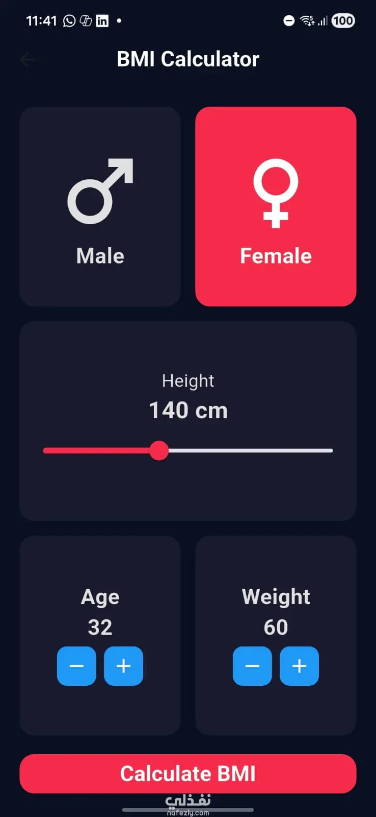 تطبيق بسيط تفاعلي يقوم بحساب مؤشر كتلة الجسم (BMI) لمساعدة المستخدمين على فهم حالتهم الصحية بناءً على الوزن والطول.