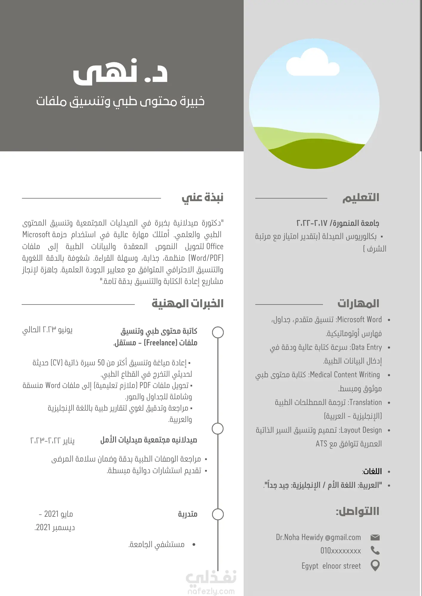 تصميم وتنسيق سيرة ذاتية (CV) احترافية للمجال الطبي.