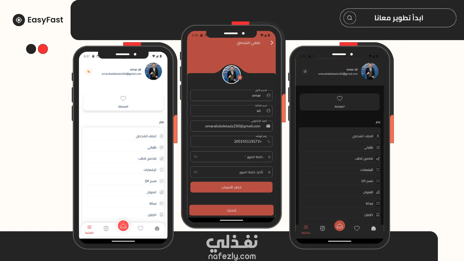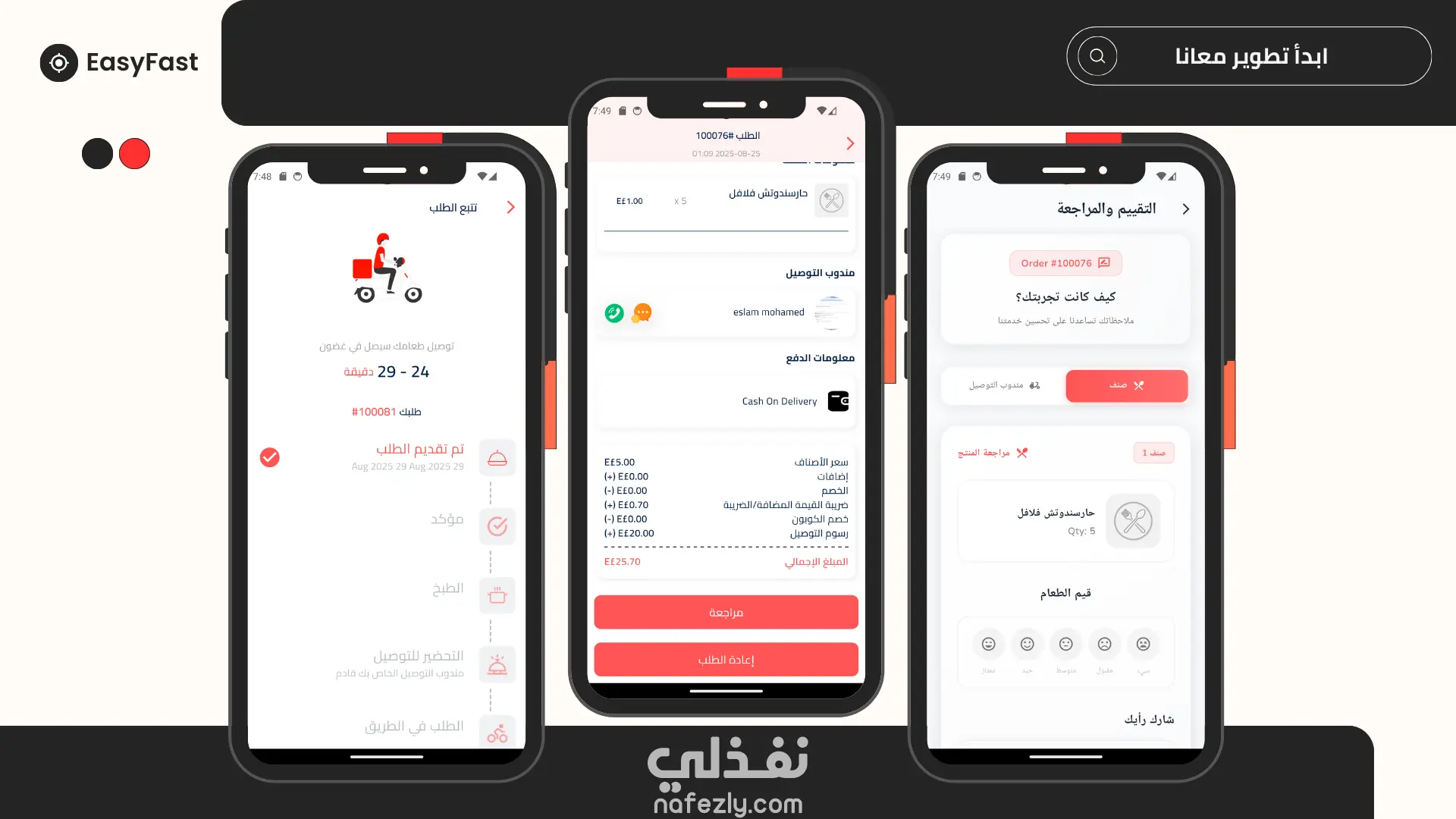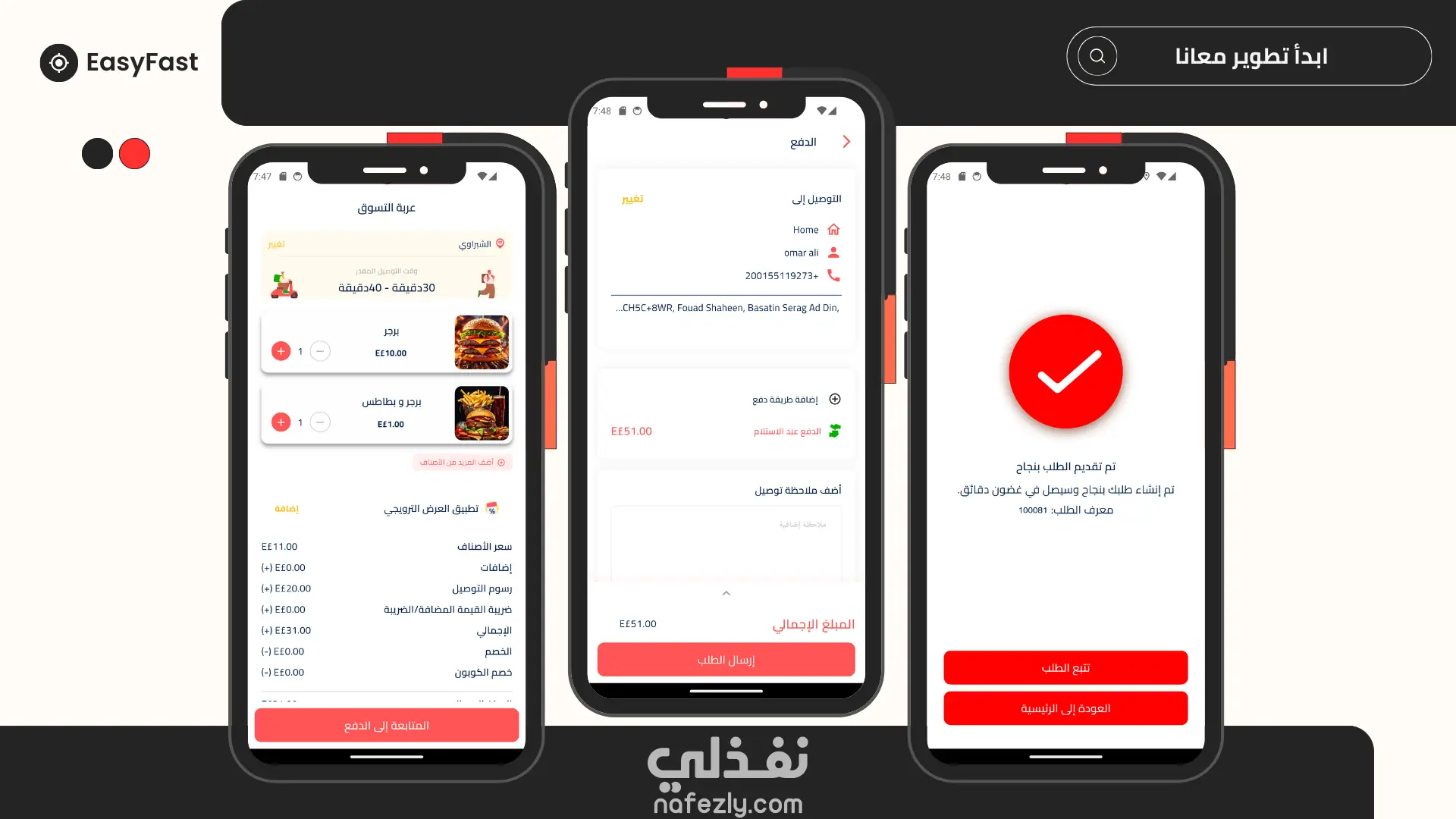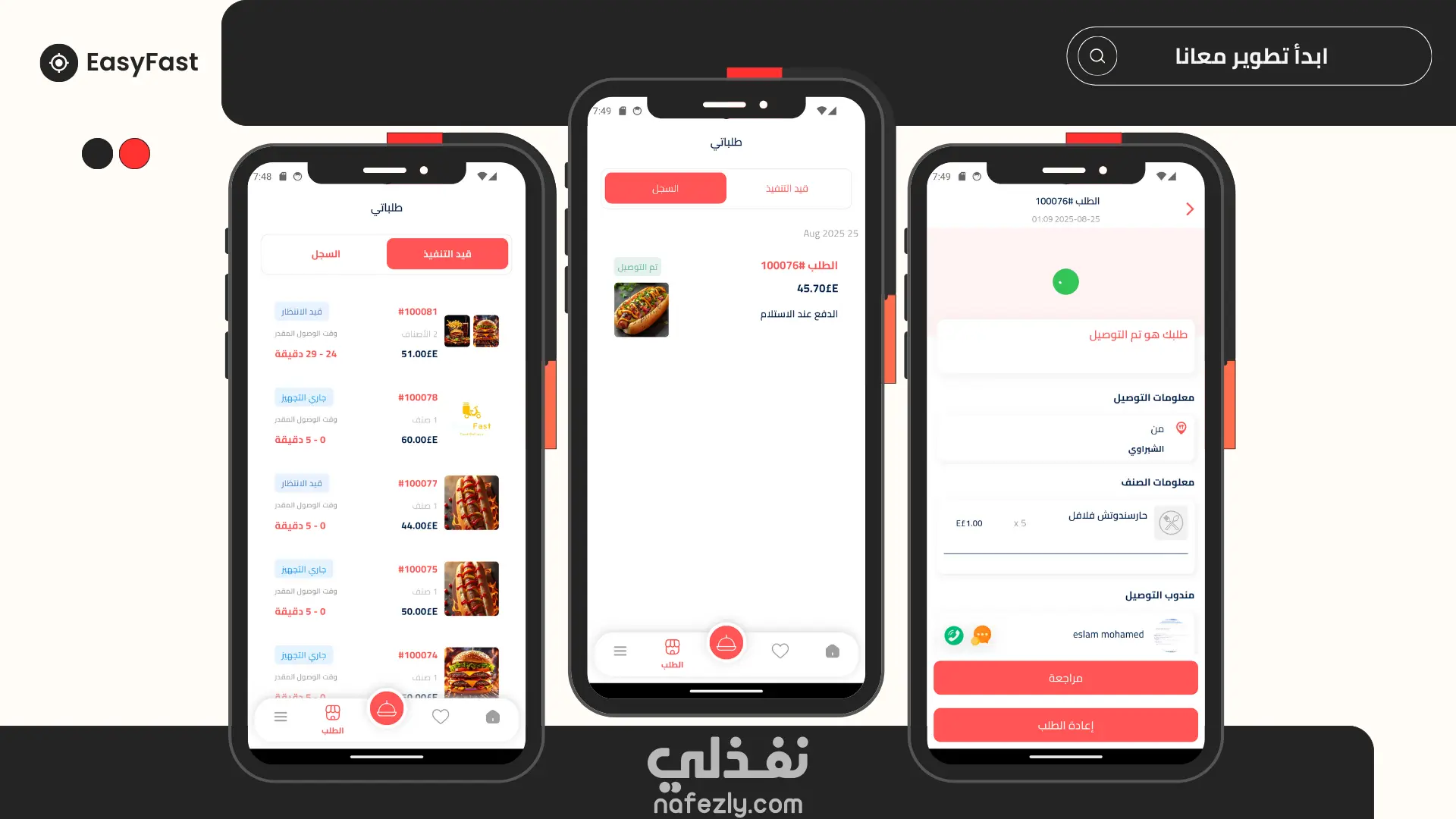 EasyFast هو تطبيق شامل لطلب وتوصيل الطعام يعمل على الهواتف الذكية والمتصفحات. التطبيق يربط بين المطاعم والعملاء وسائقي التوصيل في منصة واحدة متكاملة. الميزات الأساسية للعملاء: تصفح المطاعم والقوائم المتنوعة البحث عن الأطباق حسب النوع أو المطعم إمكانية الطلب والدفع تتبع الطلب في الوقت الفعلي تقييم المطاعم والوجبات الميزات الأساسية للمطاعم: إدارة القوائم والأسعار استلام الطلبات فوريًا إحصائيات المبيعات والأرباح إدارة أوقات العمل والتوفر الميزات الأساسية للمطاعم لسائقي التوصيل: خرائط GPS للملاحة إشعارات الطلبات الجديدة حساب المسافات والأرباح تحديث حالة التوصيل طريقة التنفيذ: تطوير النظام باستخدام تقنيات حديثة مثل dart تصميم واجهة مستخدم عصرية باستخدام إطار عمل flutter وربط بي Restful Api , Firebase.