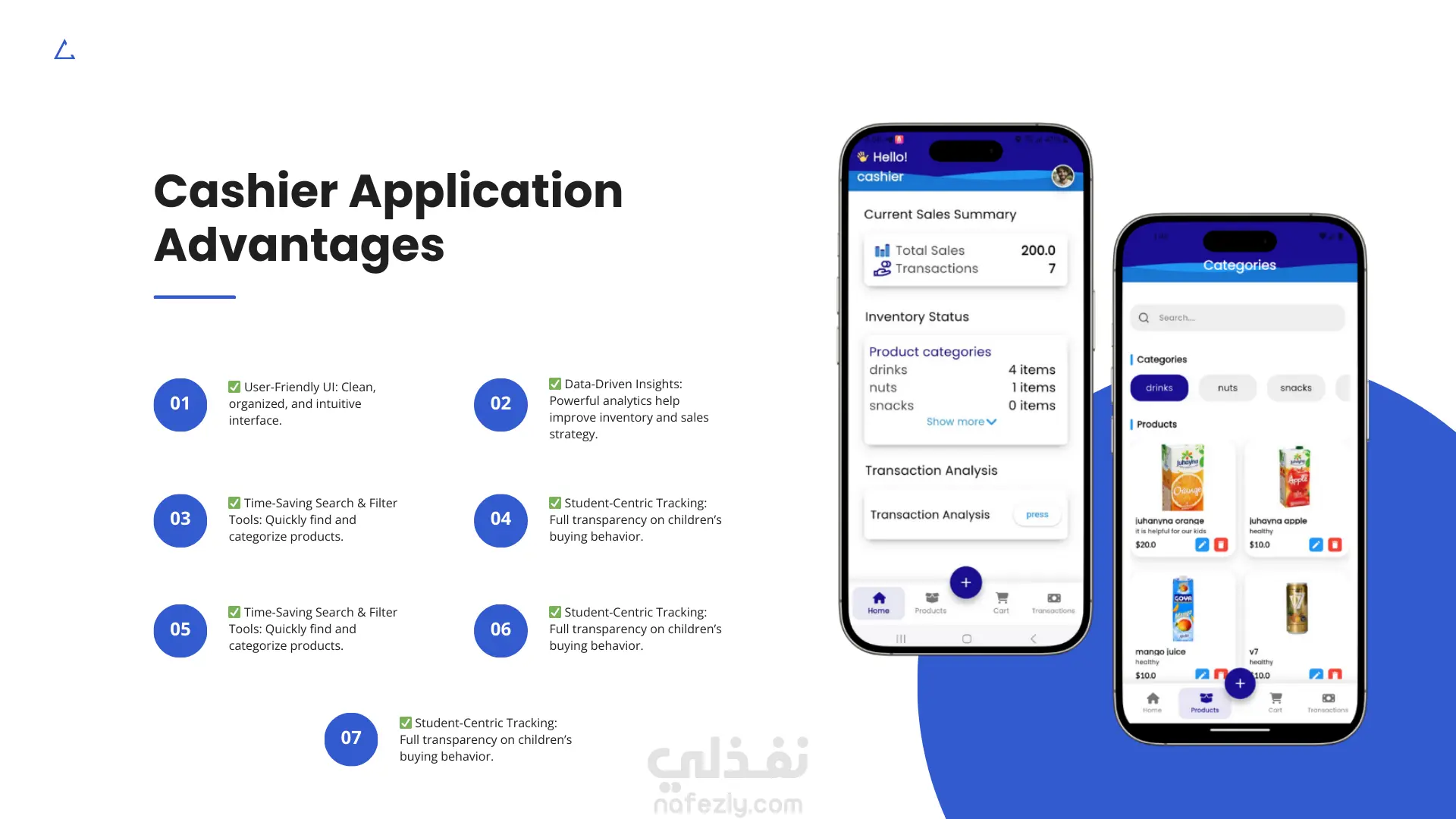 ومتابعة المنتجات التي يشتريها طالب من كاشير وتحديد منتجات المسموح للطالب شرائها