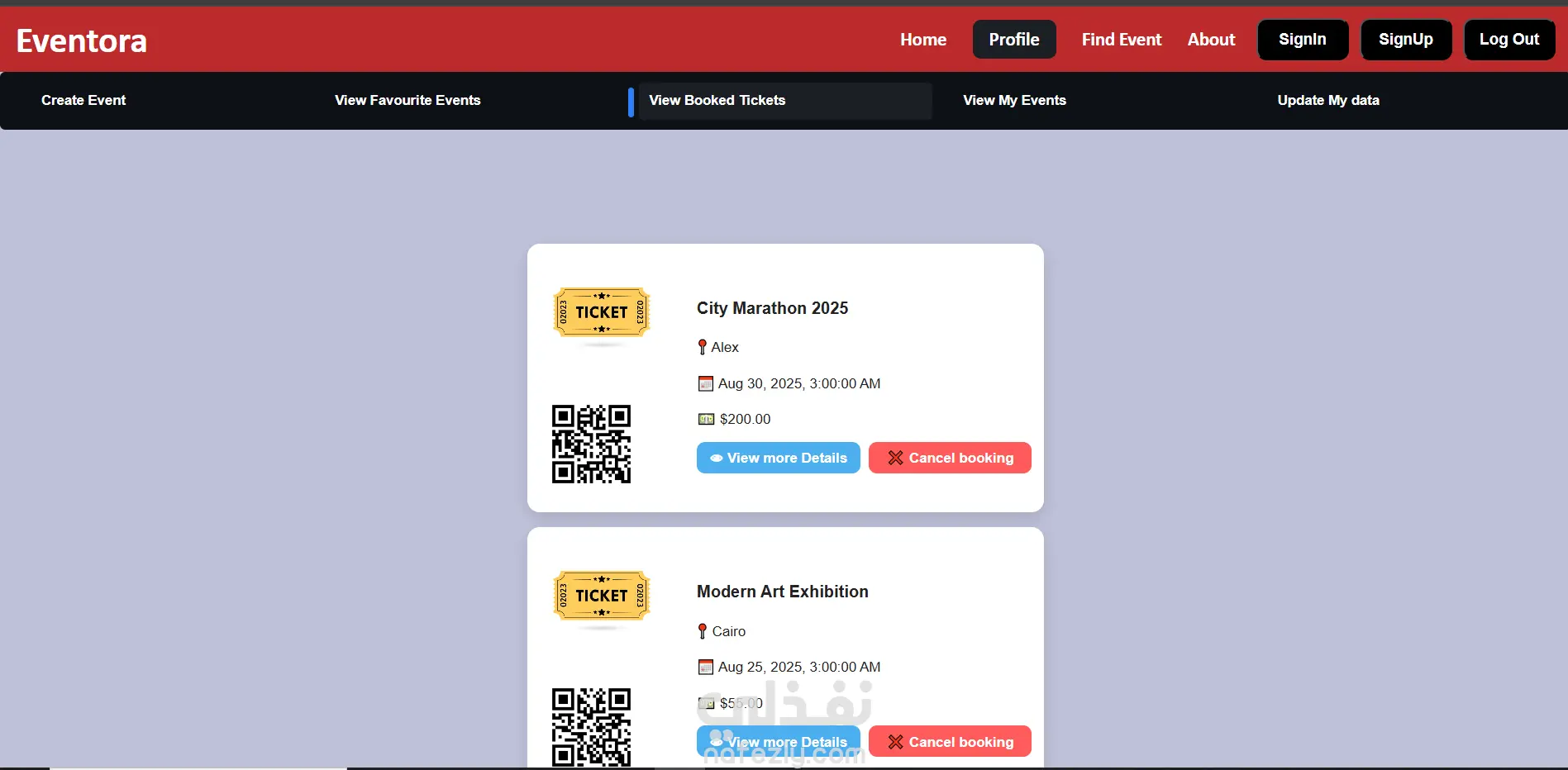 تطوير منصة حجز تذاكر وفعاليات متكاملة (Eventora - MEAN Stack)