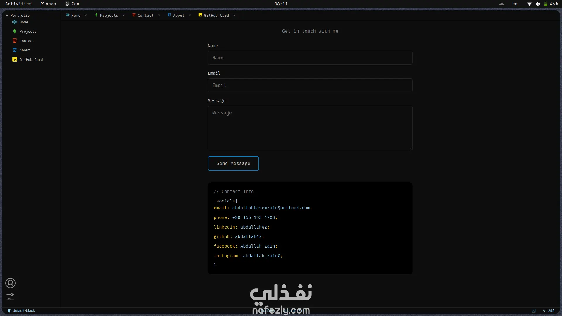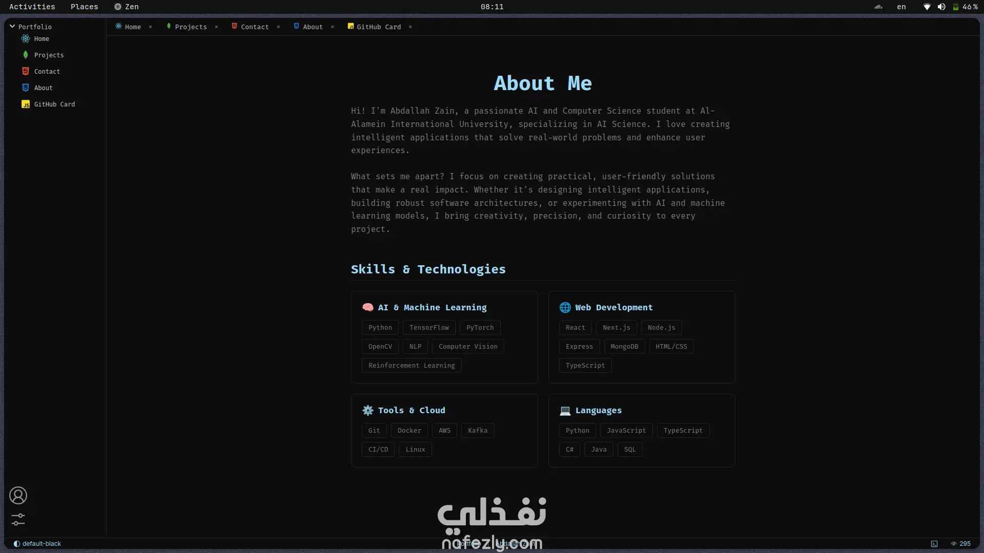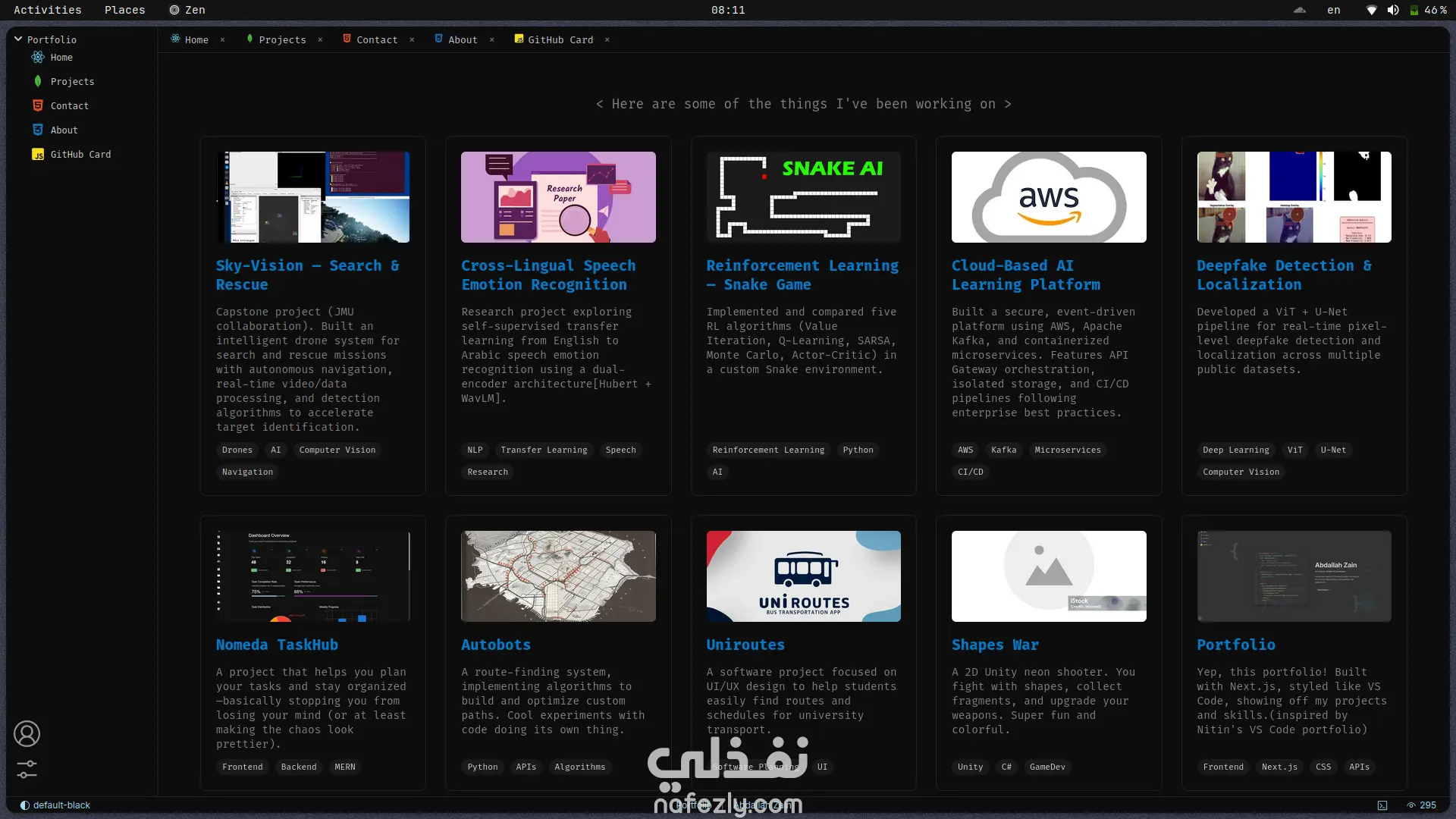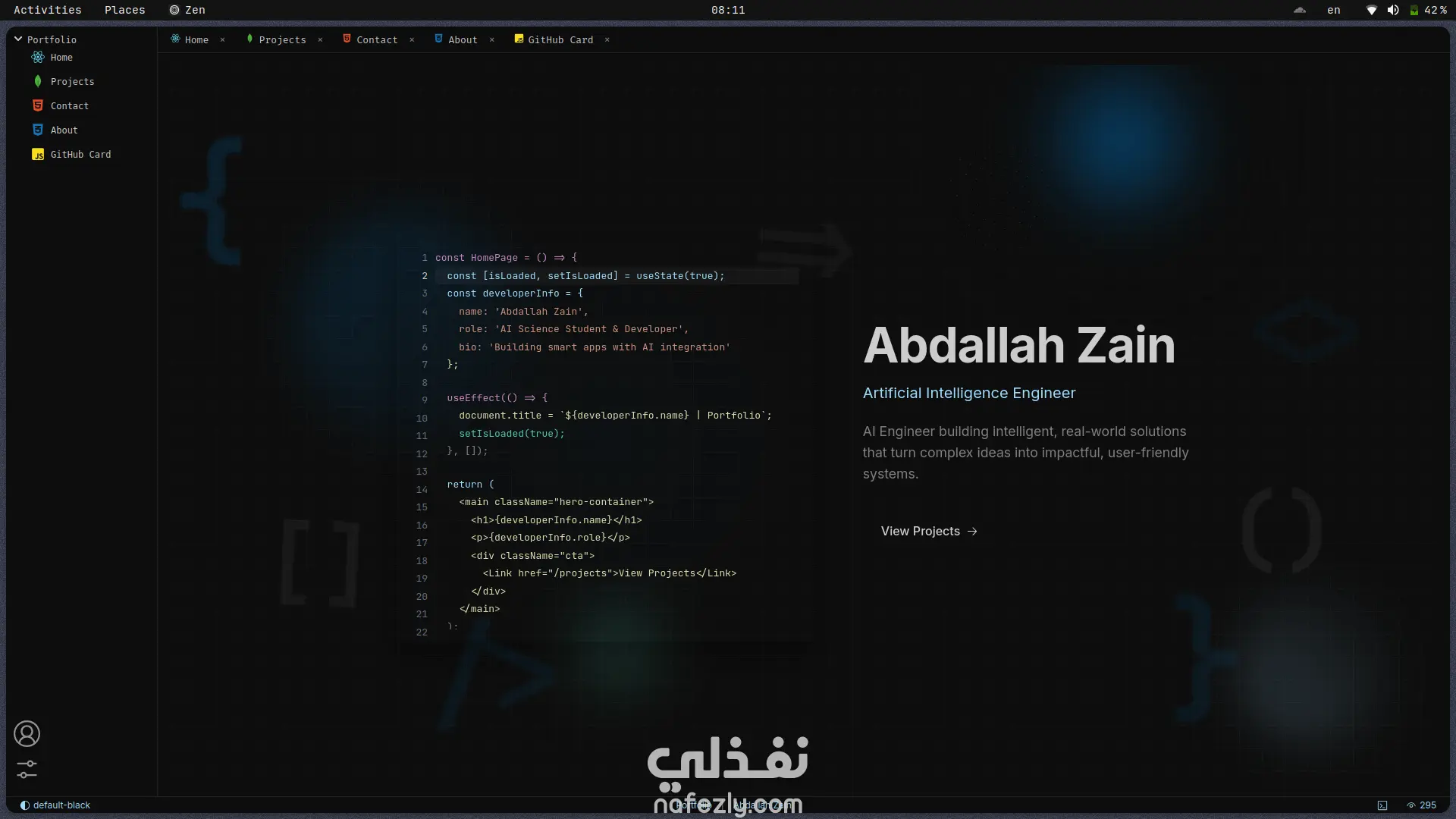 My portfolio! Built with Next.js, styled like VS Code, showing off my projects and skills.