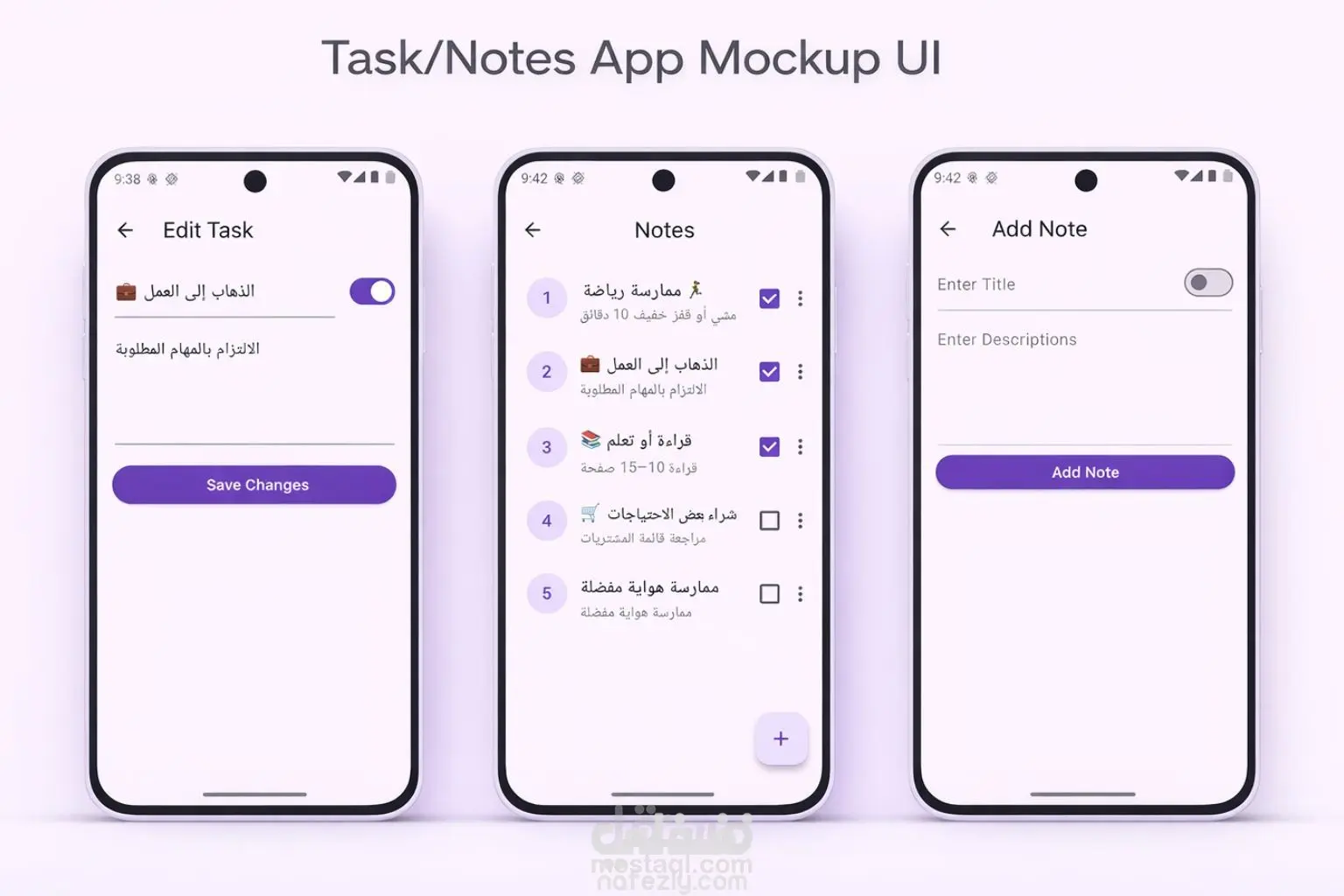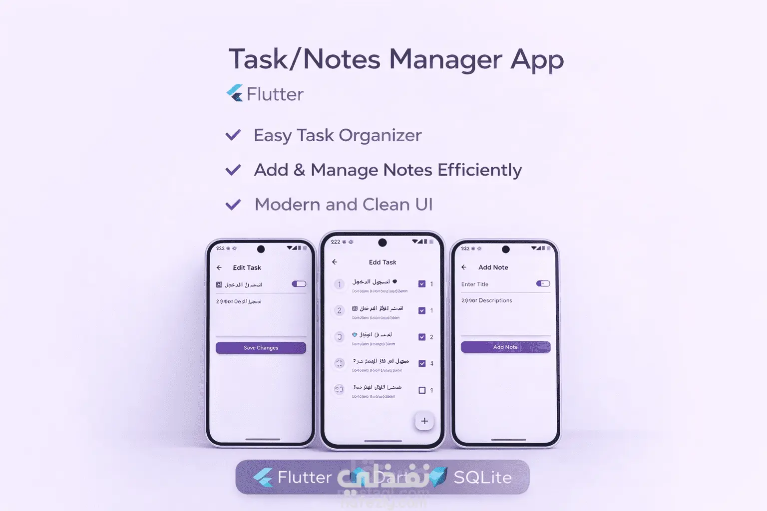 تطبيق موبايل بسيط وفعال لإدارة المهام اليومية والملاحظات، يساعد المستخدم على تنظيم وقته وتتبع المهام التي يجب إنجازها.