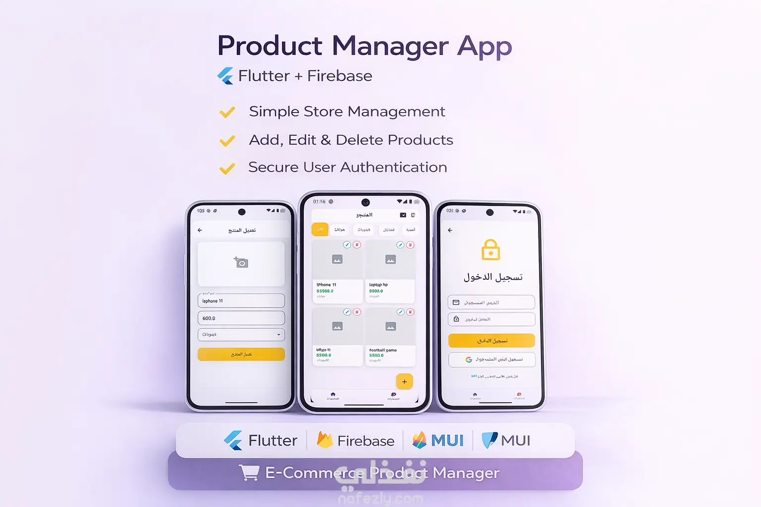 قمت بتطوير تطبيق موبايل لإدارة المنتجات داخل متجر إلكتروني، حيث يتيح للتاجر إضافة المنتجات وتعديلها وحذفها بسهولة مع تصنيف المنتجات وعرضها بطريقة منظمة.