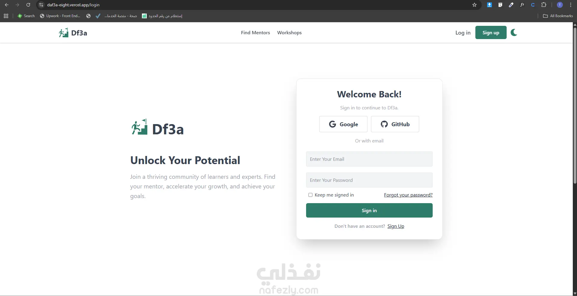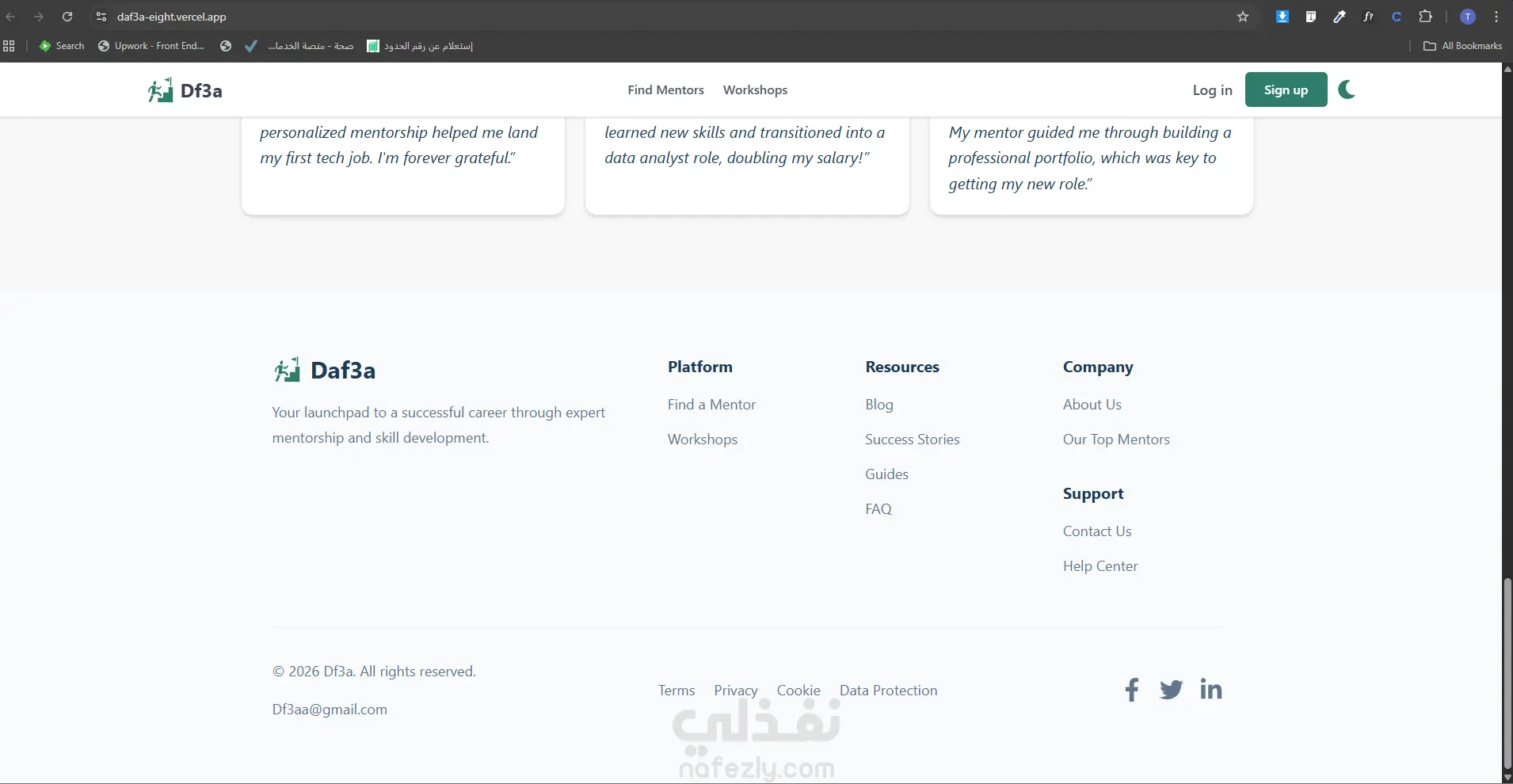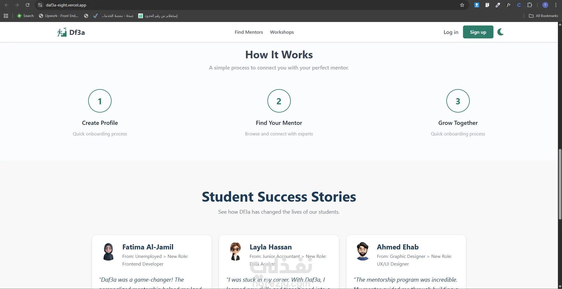 مشروع Df3a هو منصة ويب تعليمية حديثة تهدف إلى ربط المستخدمين بالـ Mentors المناسبين، إلى جانب عرض ورش عمل تعليمية بشكل منظم وسهل الاستخدام. تم تصميم وتطوير الواجهة بشكل عصري ومتجاوب مع مختلف الشاشات، مع التركيز على وضوح المحتوى وسهولة التنقل وتجربة مستخدم مريحة تساعد الزائر على الوصول السريع للخدمات الأساسية داخل المنصة. يشمل المشروع صفحات أساسية مثل الصفحة الرئيسية، تسجيل الدخول، وإنشاء حساب، مع بناء واجهات منظمة وقابلة للتطوير مستقبلًا لإضافة مزايا وخدمات جديدة. تم تنفيذ المشروع باهتمام بالتفاصيل البصرية، وترتيب العناصر، وتحسين الانطباع العام للمستخدم بما يناسب طبيعة المنصات التعليمية الحديثة.