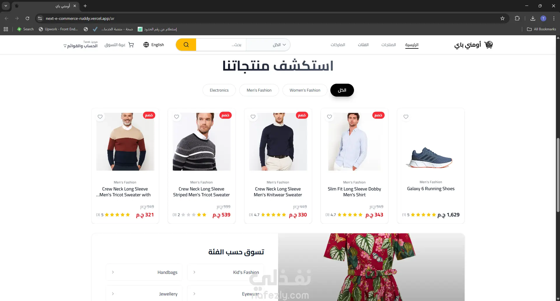 تصميم وتطوير متجر إلكتروني متعدد الأقسام باسم أومني باي يوفر تجربة تسوق متكاملة باللغة العربية مع واجهة حديثة ومتجاوبة مع مختلف الشاشات. يشمل المشروع صفحات رئيسية مثل الرئيسية، المنتجات، الماركات، عربة التسوق، وتسجيل الدخول مع عرض منظم للفئات مثل الإلكترونيات، الموبايلات، الأزياء السوبر ماركت، الكتب، الجمال والصحة والأطفال والألعاب. تم تنفيذ واجهة تعرض المنتجات، الأسعار، الخصومات، التقييمات، والتصنيفات بشكل واضح يساعد المستخدم على التصفح واختيار المنتجات بسهولة، إلى جانب إبراز الماركات الشهيرة وتقديم تجربة استخدام مريحة ومنظمة. كما يتضمن المشروع دعمًا لواجهة عربية، ومعلومات تواصل، وروابط للسوشيال ميديا، مما يجعله أقرب إلى نموذج متجر إلكتروني عملي قابل للتطوير.