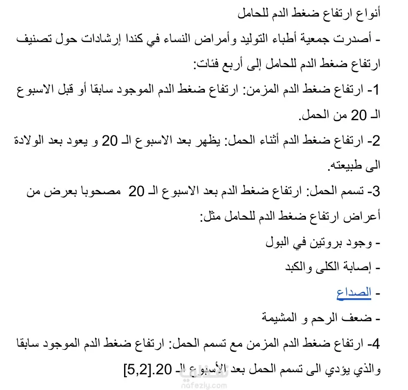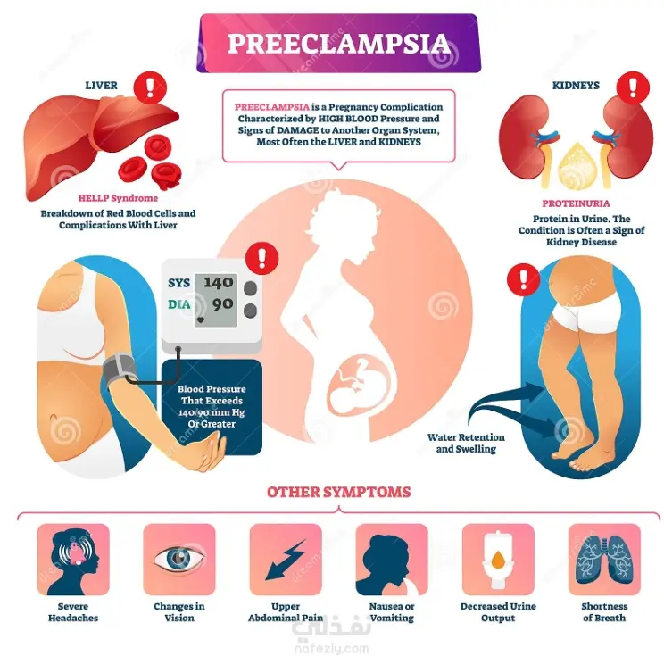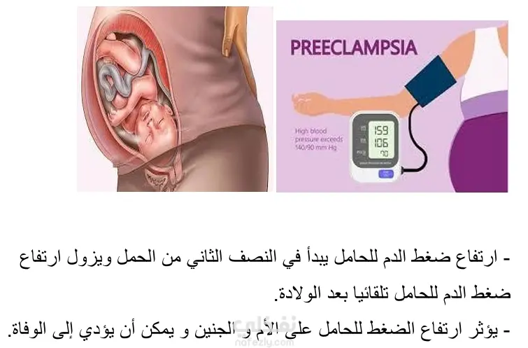 ارتفاع ضغط الدم لدي الحامل الاعراض الاسباب التشخيص الانواع الاضرار العلاج الوقاية