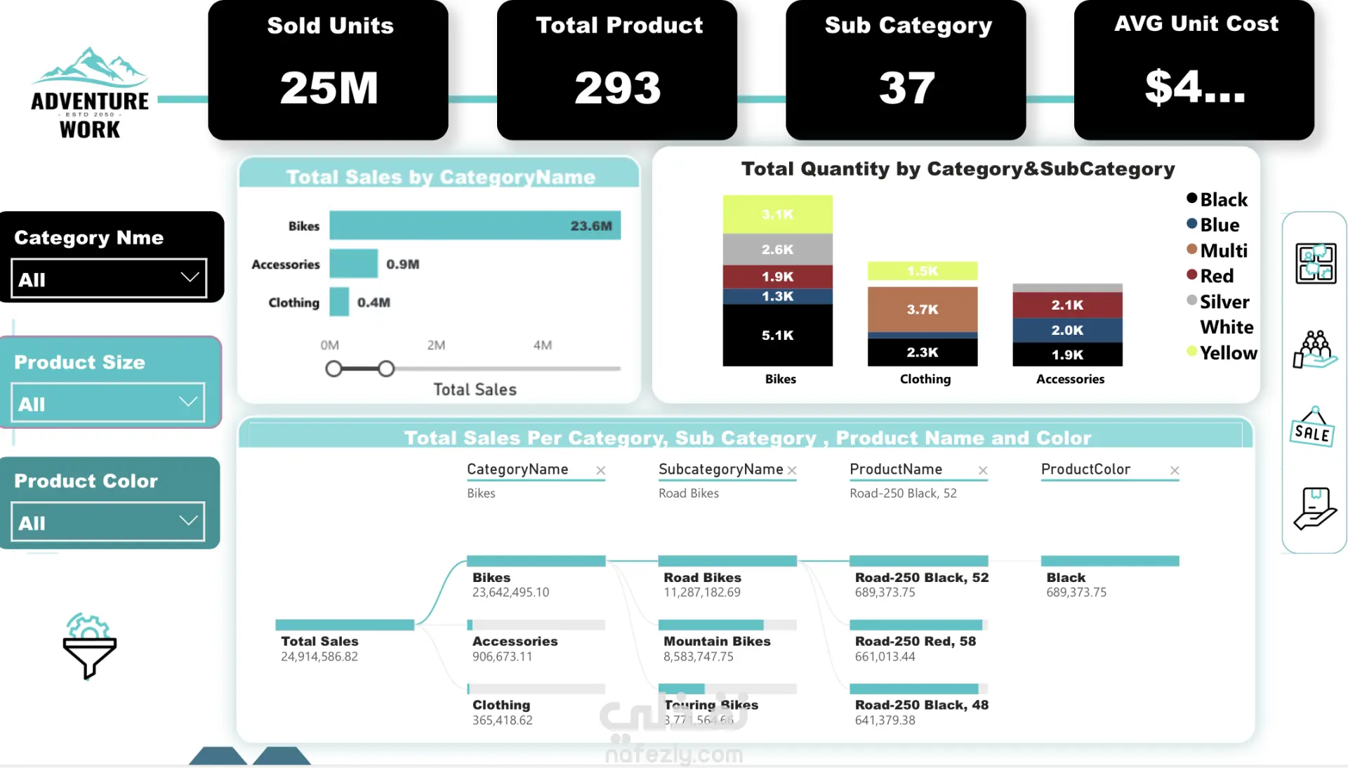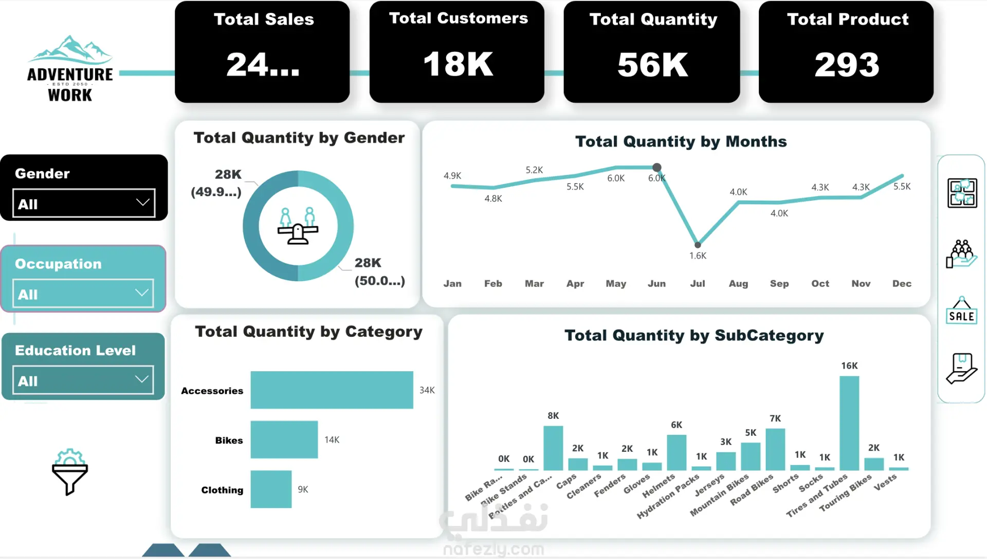 في هذا المشروع قمت بتحليل بيانات شركة Adventure Works، وهي شركة متخصصة في بيع المنتجات الرياضية، بهدف فهم أداء المبيعات واستخراج رؤى تساعد في تحسين الأداء وزيادة الأرباح.