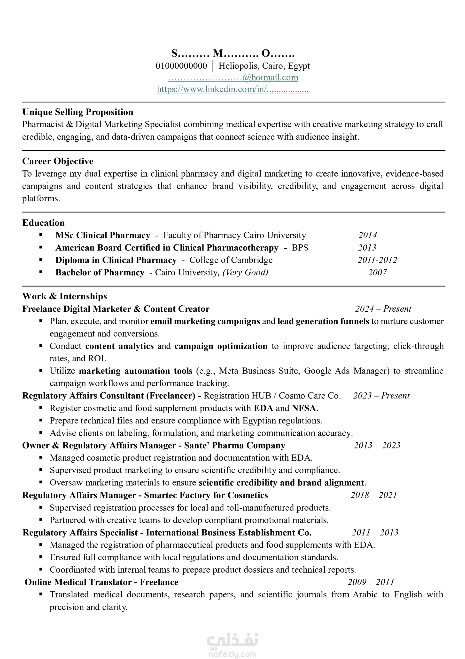 - كتابة وتصميم سيرة ذاتيه احترافيه طبقا للاشتراطات العالميه ATS