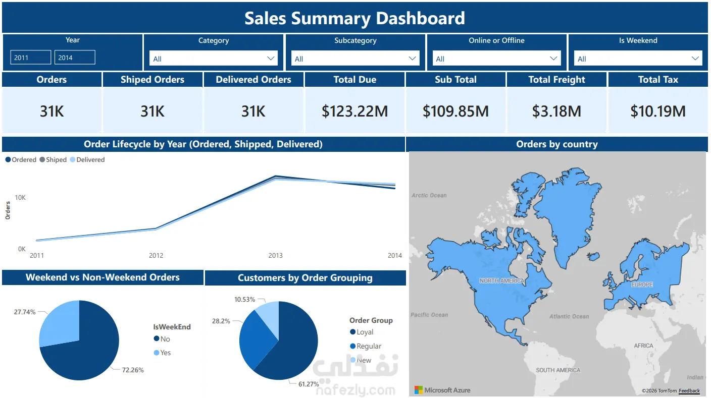 تم تصميم لوحة تحكم تفاعلية تعرض البيانات بشكل بصري جذاب وسهل الفهم، مع التركيز على تجربة المستخدم والوضوح في المعلومات. مميزات المشروع: جمع وتنظيف البيانات (Data Cleaning) لضمان دقة المعلومات بناء نموذج بيانات متكامل (Data Modeling) لربط الجداول وحساب المقاييس المهمة عرض مؤشرات الأداء الرئيسية (KPIs) مثل المبيعات، الأرباح، وعدد الطلبات تتبع الأداء عبر الزمن (شهري / سنوي) رسوم بيانية تفاعلية واضحة وسهلة التحليل فلاتر تفاعلية للتحكم في البيانات