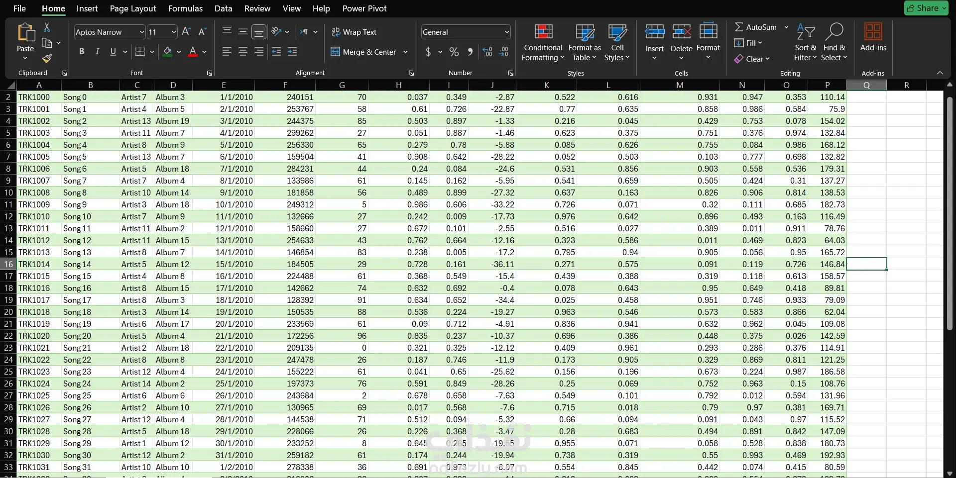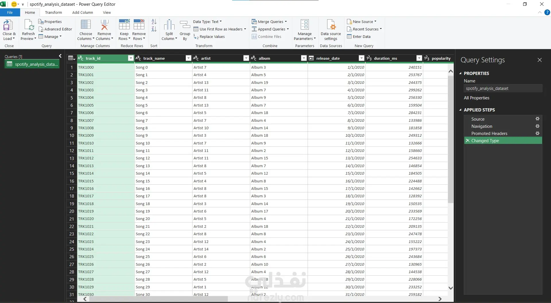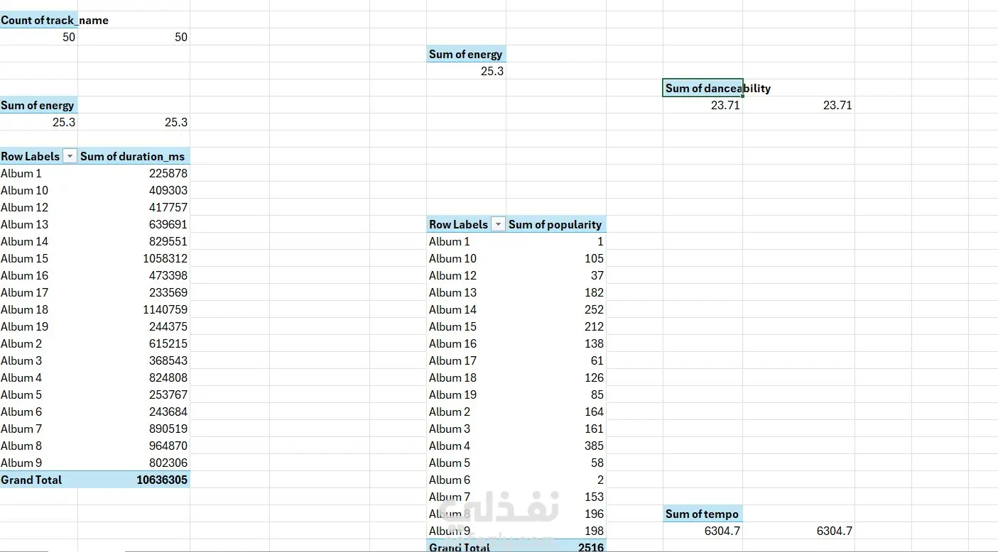 تحليل بيانات سبوتيفاي بأستخدام اكسيل (Excel)