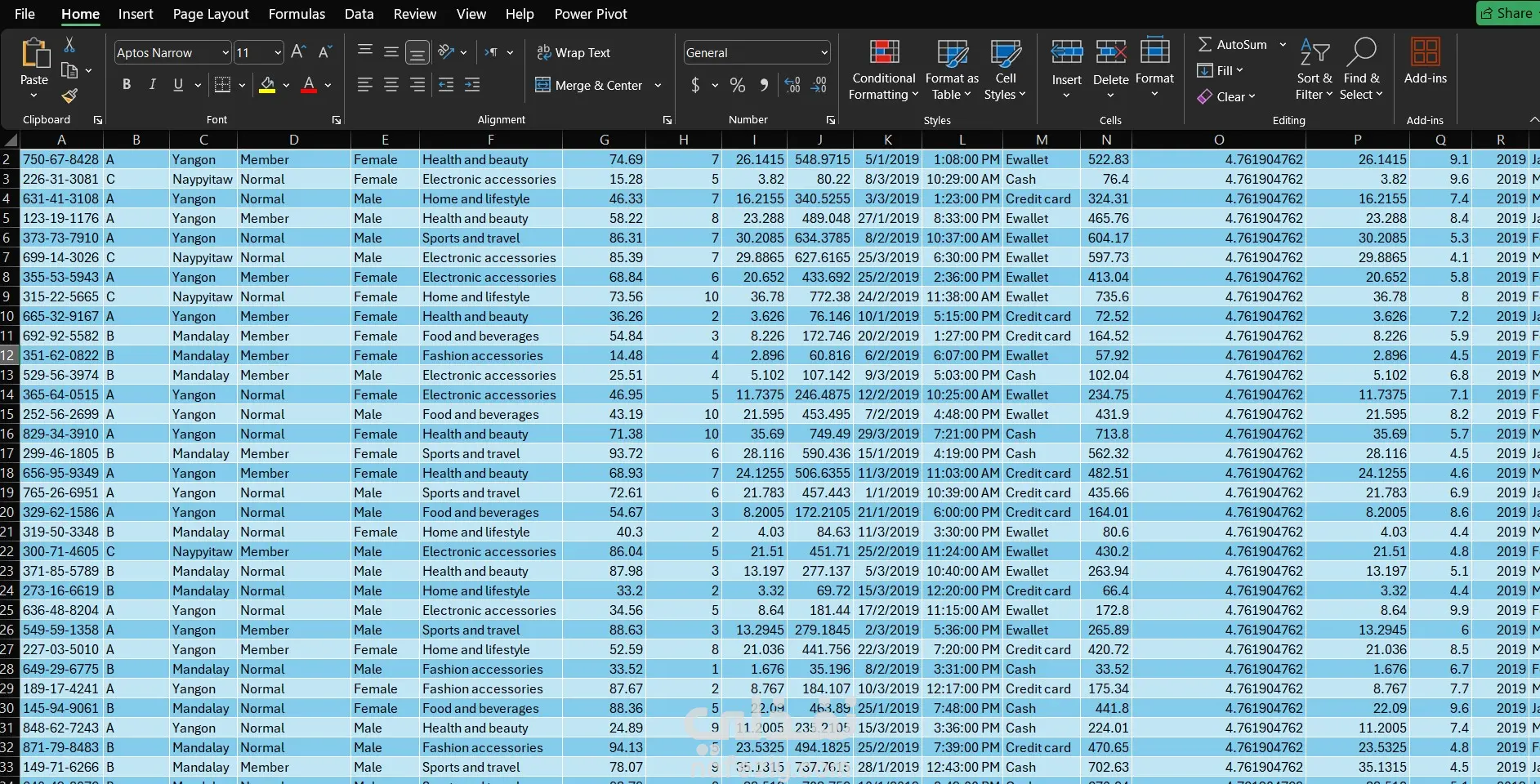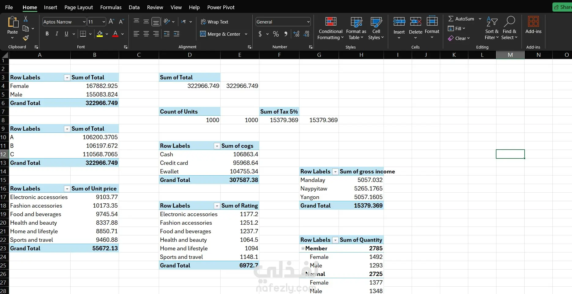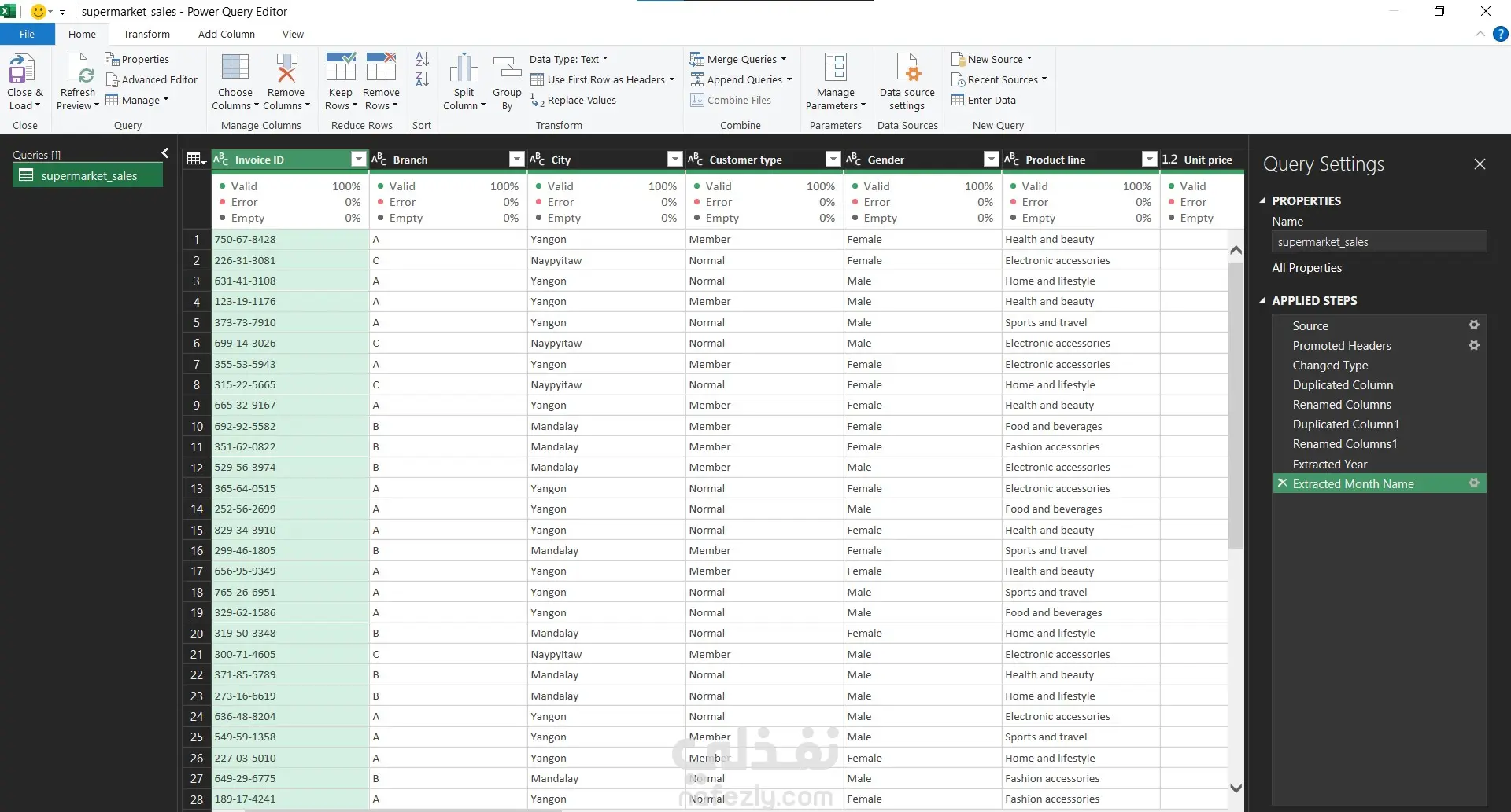 تحليل بيانات سوبرماركت بأستخدام اكسيل (Excel)