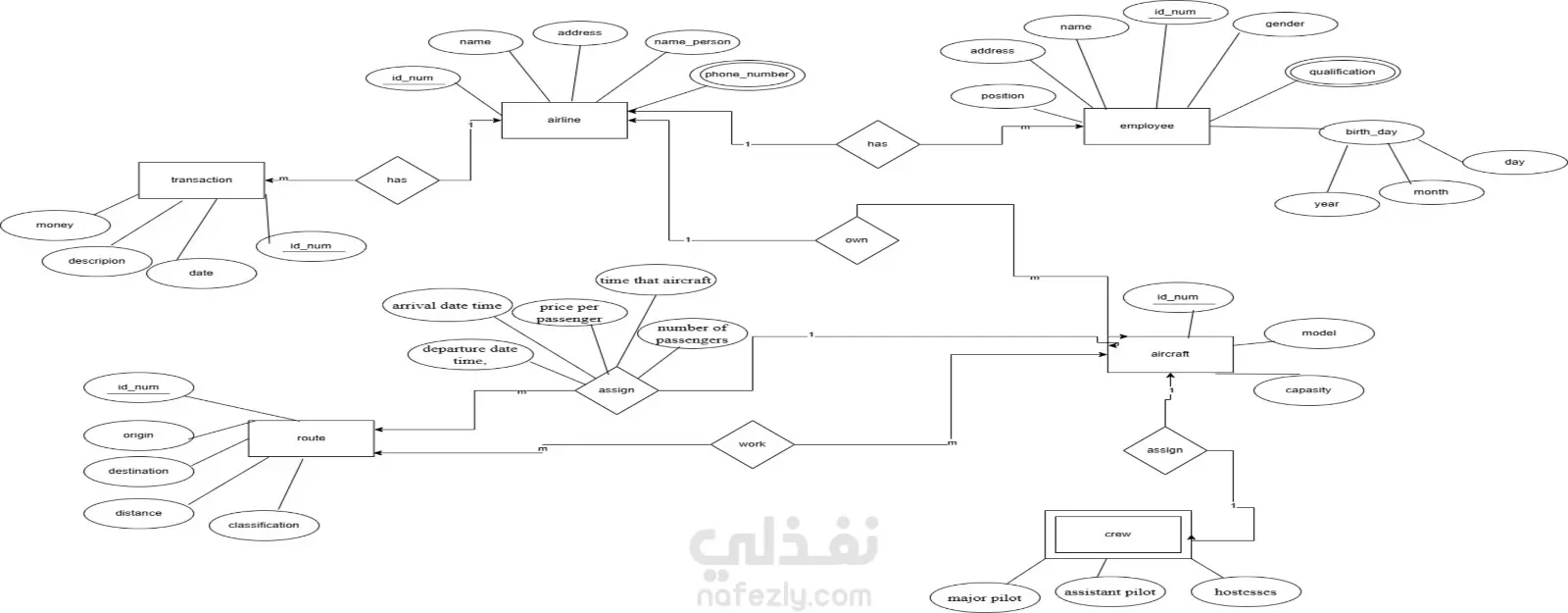 تصميم مخطط ERD لنظام إدارة شركات الطيران (Airline System)