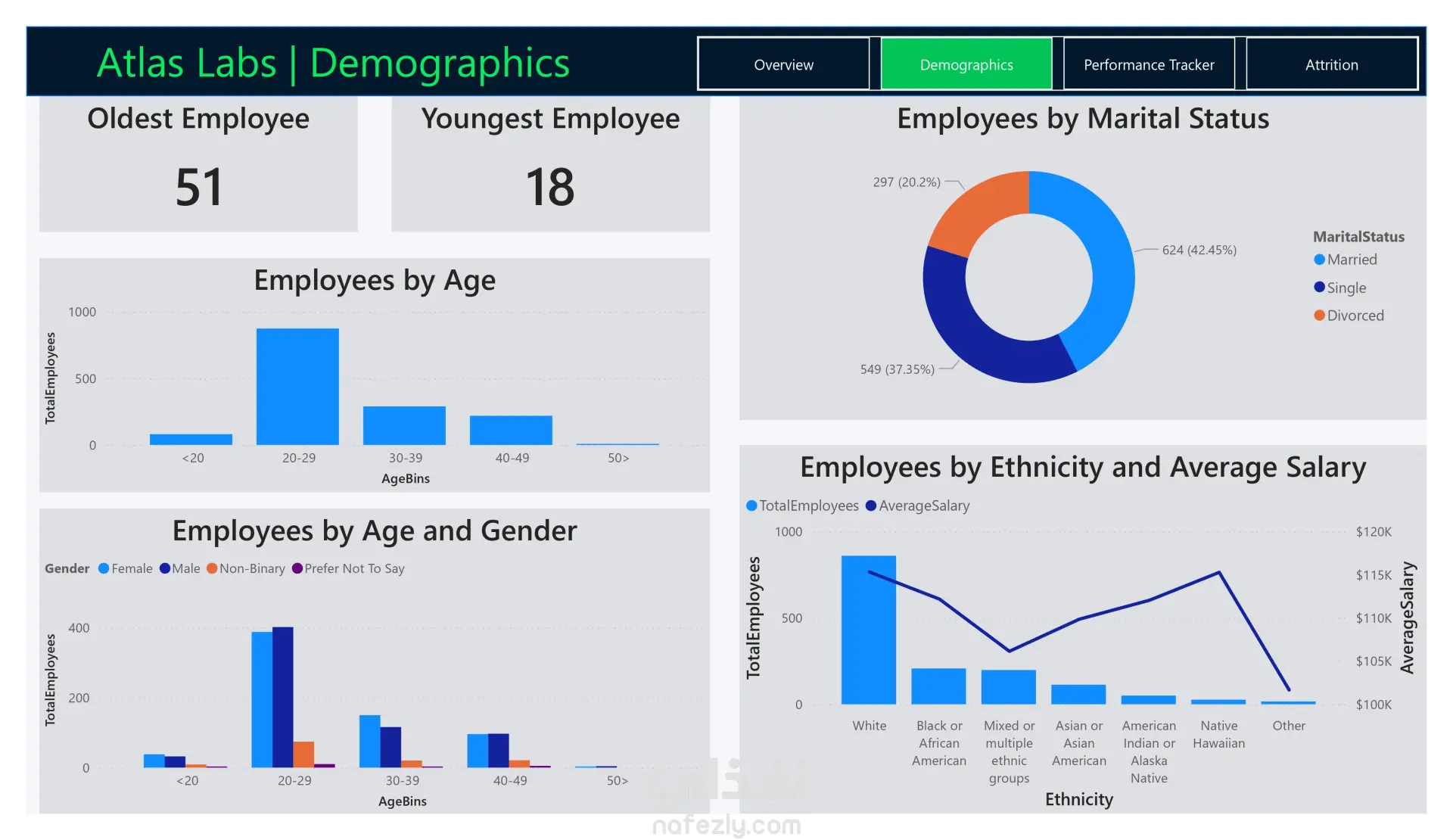 Demographics: تحليل العلاقة بين ترك العمل والعوامل الديموغرافية مثل العمر، النوع، والحالة الاجتماعية.