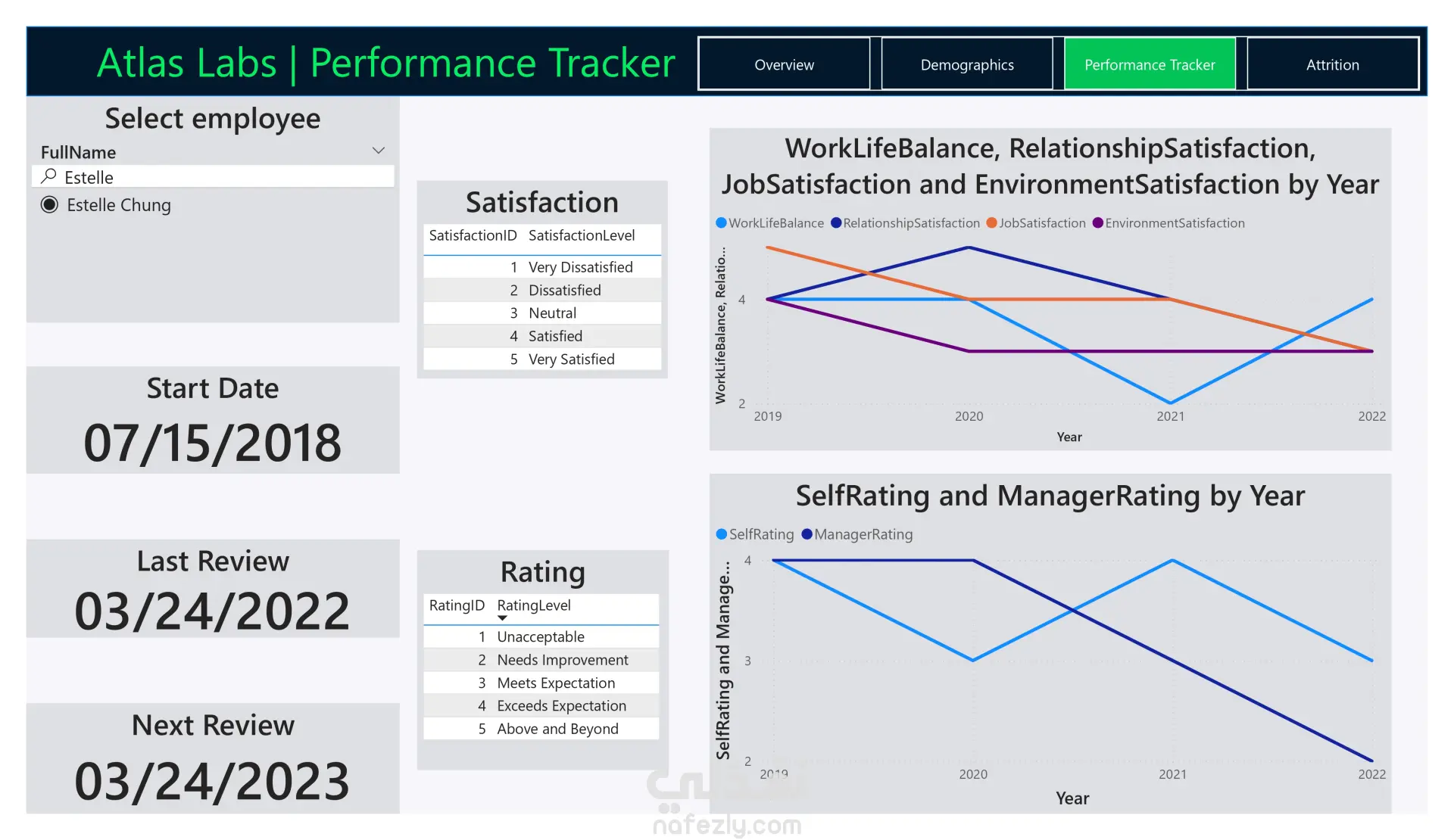 Performance Tracker: متابعة أداء الموظفين ومقارنة تقييماتهم مع تقييم المدير عبر الزمن.