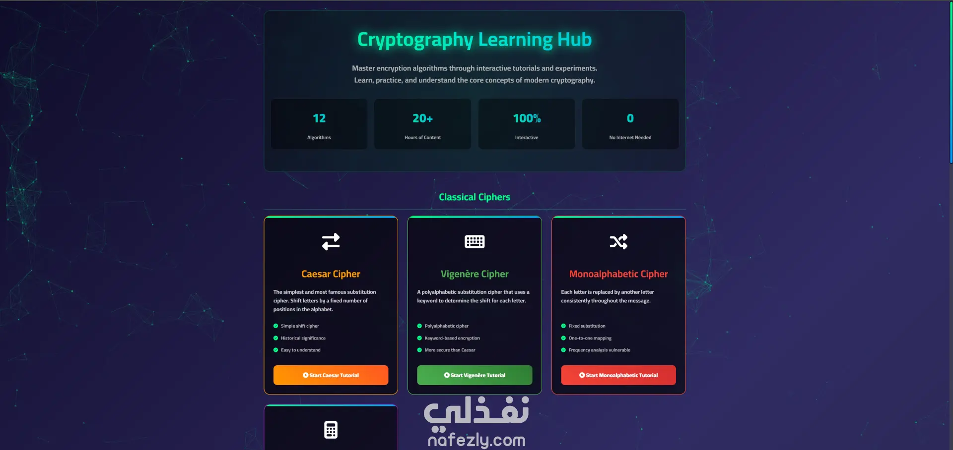 Built a full cryptography platform integrating backend algorithms with FastAPI and a responsive frontend.
