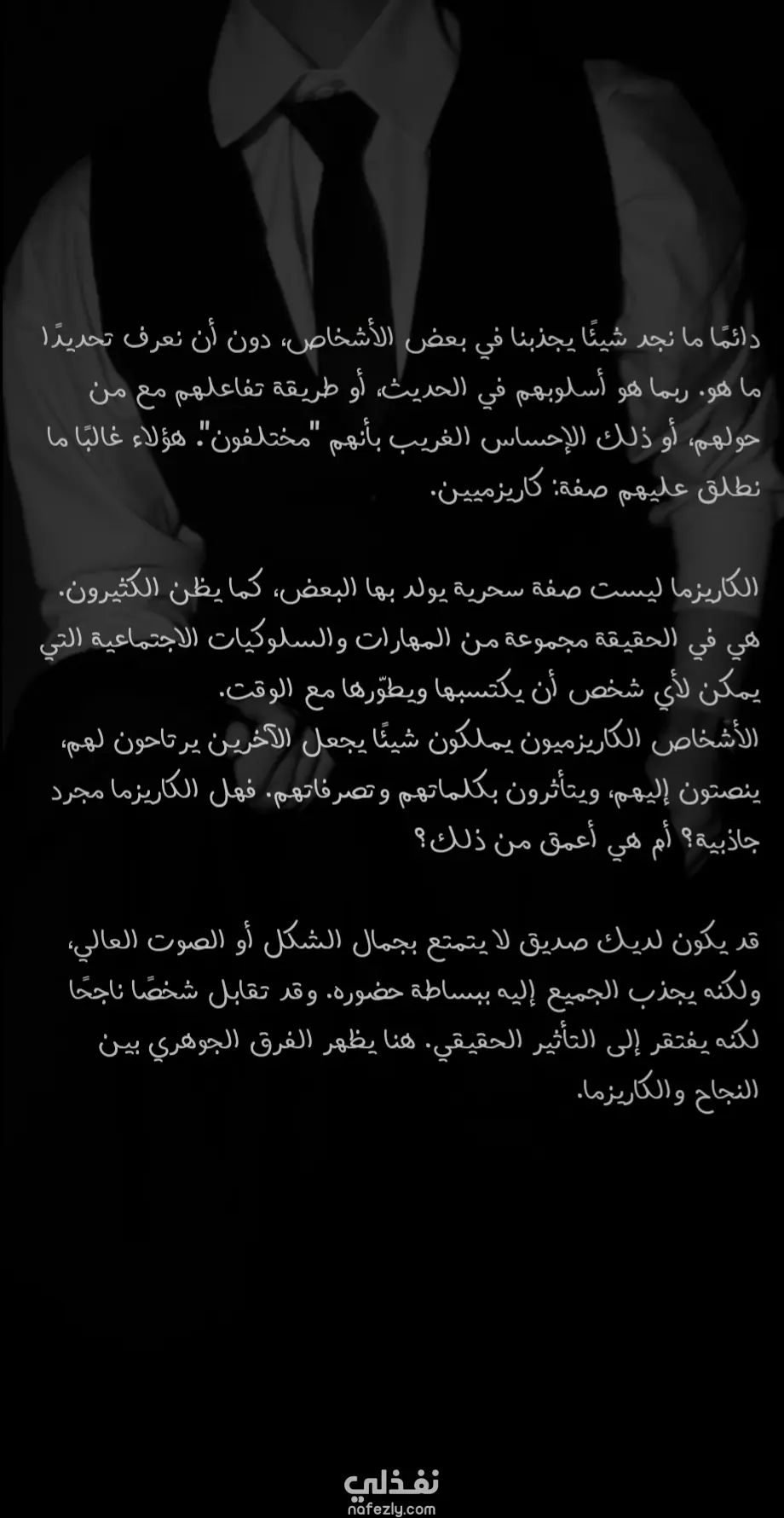 في هذا النص، قمت بتفكيك مفهوم "الكاريزما" من هالة الغموض المحيطة به إلى مهارة إنسانية يمكن تعلمها وتطويرها. الهدف كان تقديم محتوى "تنويري" يجمع بين التحليل النفسي والتحفيز الذاتي، بأسلوب يشد القارئ ويجعله يتساءل عن قدراته الخاصة.