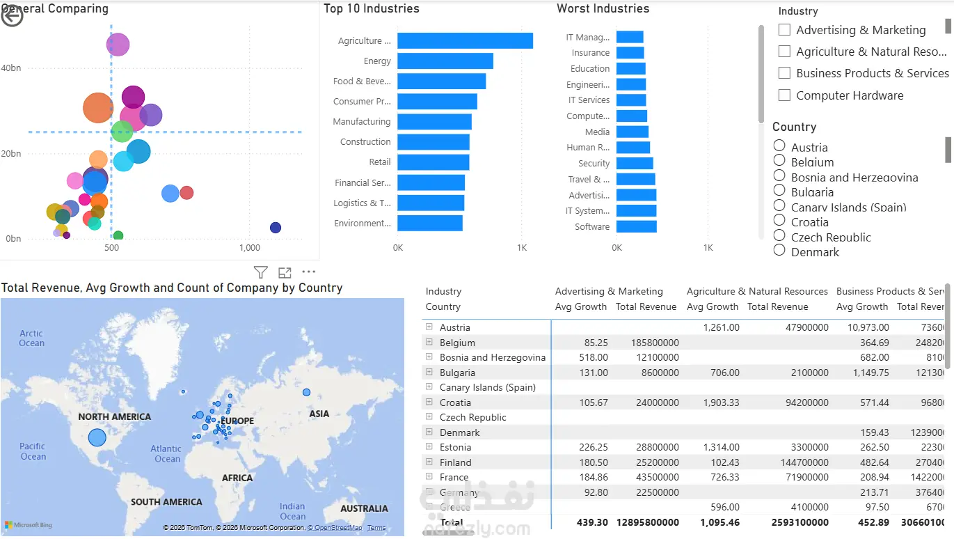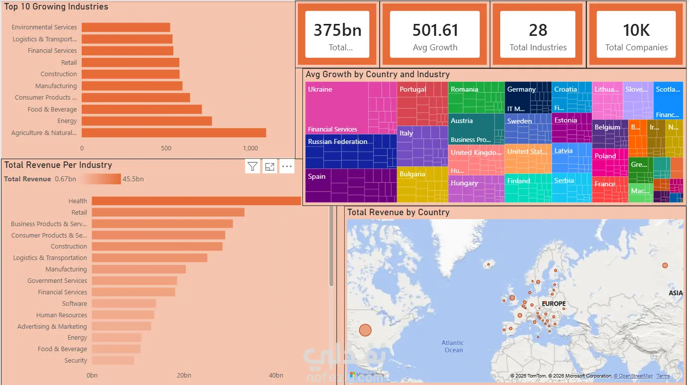 معالجة وتنظيف البيانات وتجهيزها للاستخدام، مع إنشاء Data Model مبسط لتنظيم العلاقات بين الجداول. تصميم Dashboard صفحه واحده تفاعلية ومخصصة باستخدام Power BI لعرض الأداء بشكل واضح وسهل الفهم. تقديم تحليل لمؤشرات الأداء الرئيسية (KPIs 4) الخاصة بالمبيعات أو الأداء العام. يشمل الخدمة تعديلين مجانًا بعد التسليم، وأي تعديل إضافي يُحسب كإضافة. تتكون الـ Dashboard من صفحة تحتوي على 5 رسوم بيانية و 3 فلاتر.