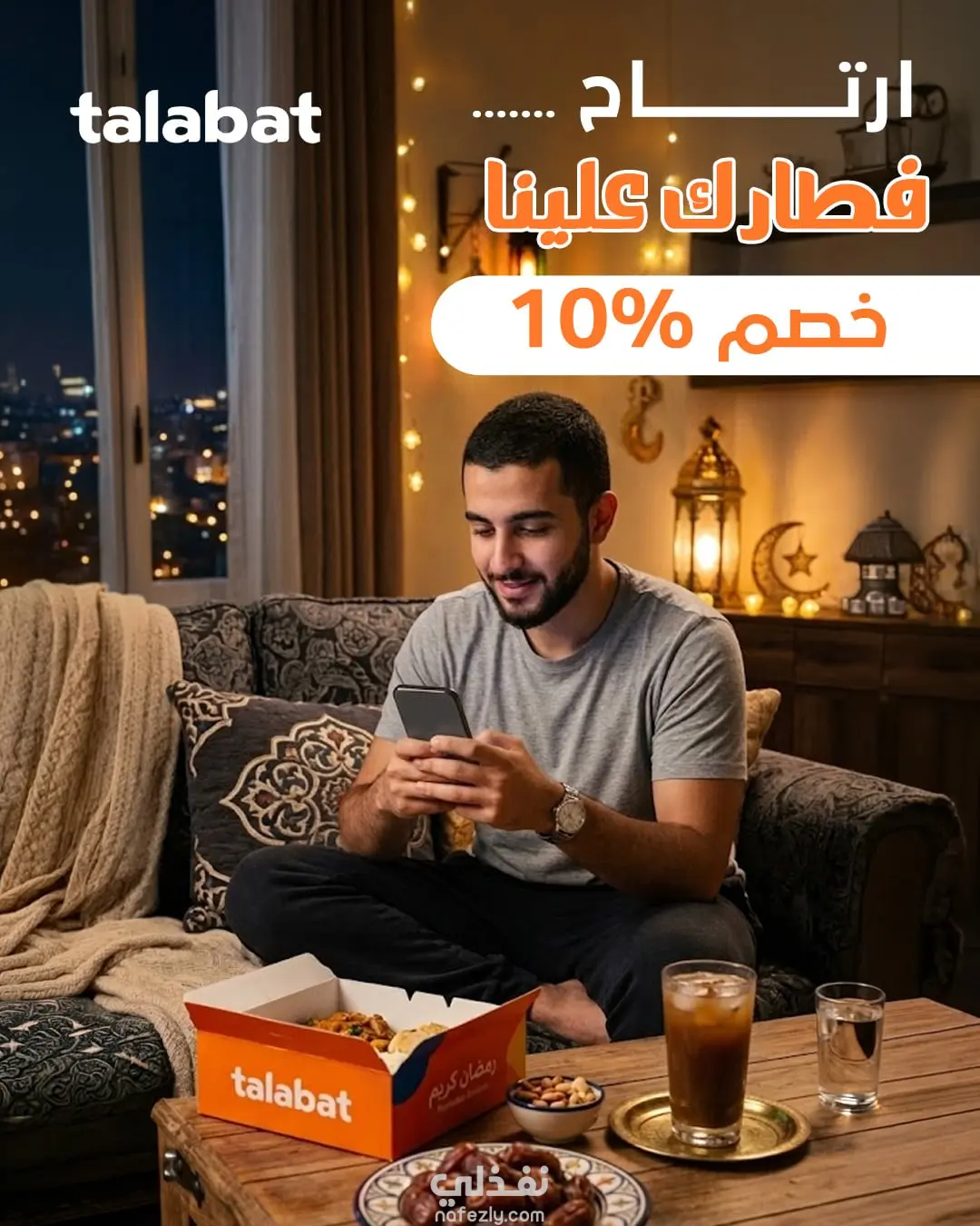 حملة إعلانية لطلبات بمناسبة رمضان بهدف زيادة المبيعات من خلال التركيز علي عرض ١٠ بالمئة خصم وربط البراند بأجواء رمضان