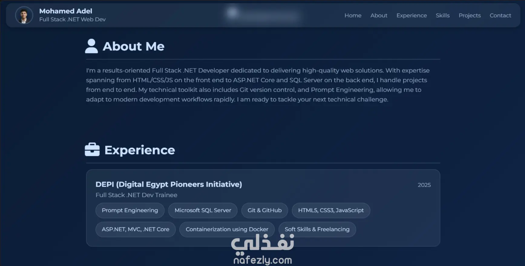 تصميم وتطوير موقع إلكتروني تعريفي (Portfolio) متكامل يعرض مهاراتي البرمجية ومشاريعي السابقة بشكل تفاعلي وجذاب. تم بناء الموقع مع التركيز على الأداء العالي، التصميم المتجاوب، وتجربة المستخدم السلسة.
