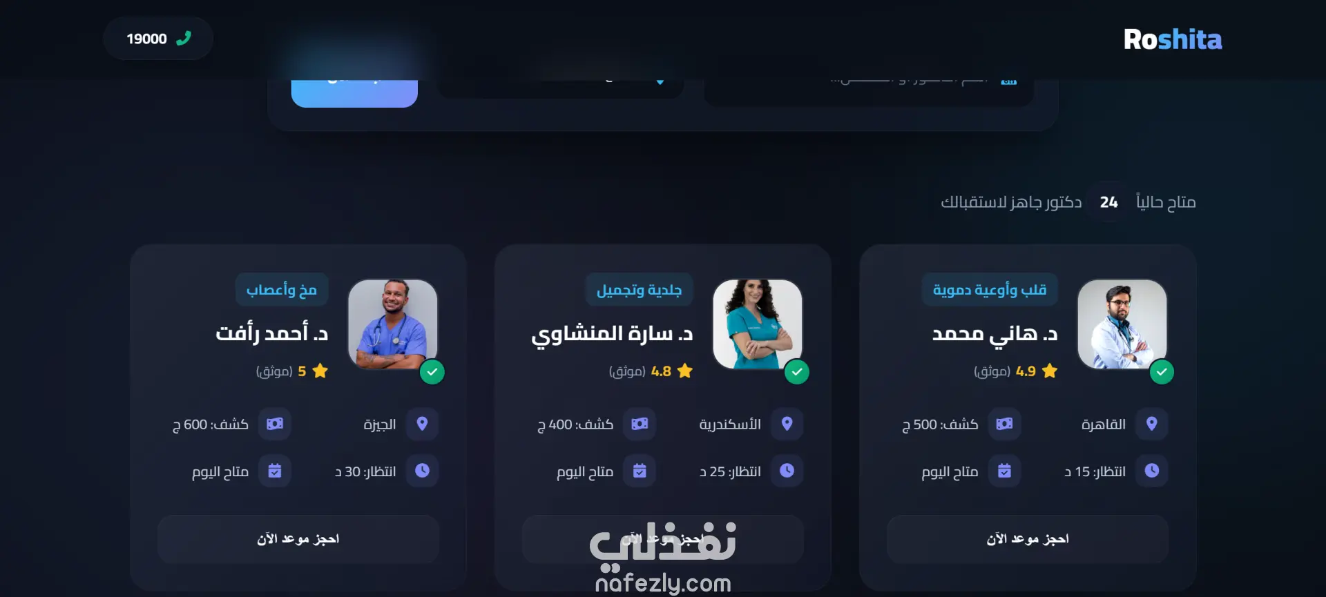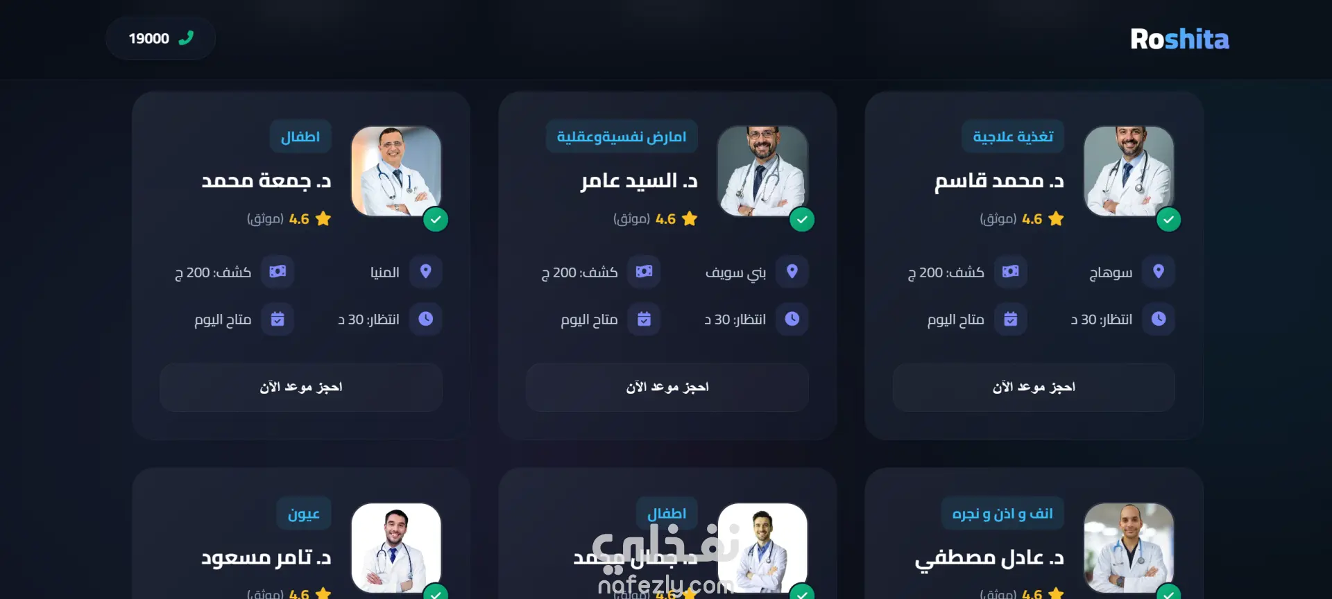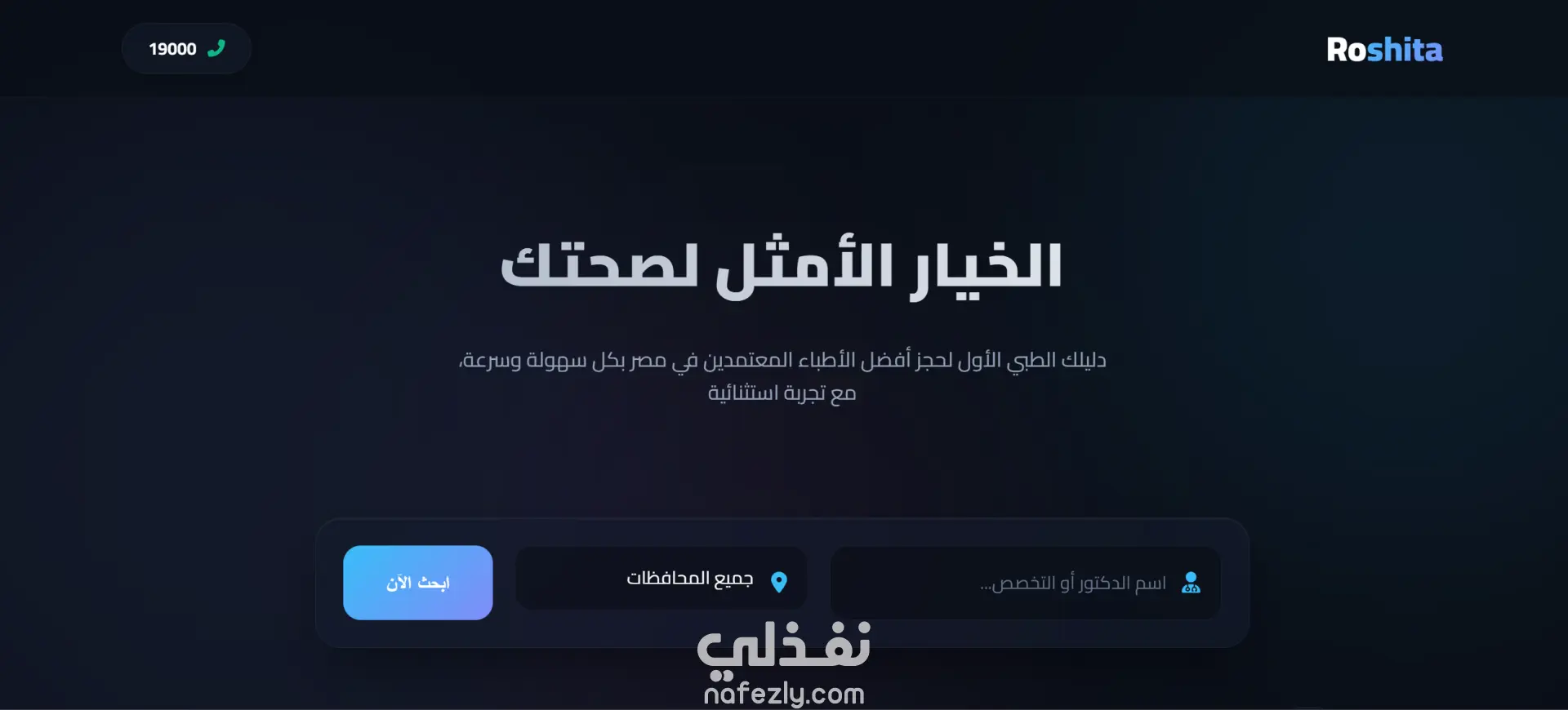 (Roshita) الخيار الأمثل لصحتك دليلك الطبي الأول لحجز أفضل الأطباء المعتمدين في مصر بكل سهولة وسرعة، مع تجربة استثنائية منصة طبية متكاملة تضم اكثر من 100 طبيب ع مستوي الجمهورية مع امكانية الحجز و الاستشاره بطاقة