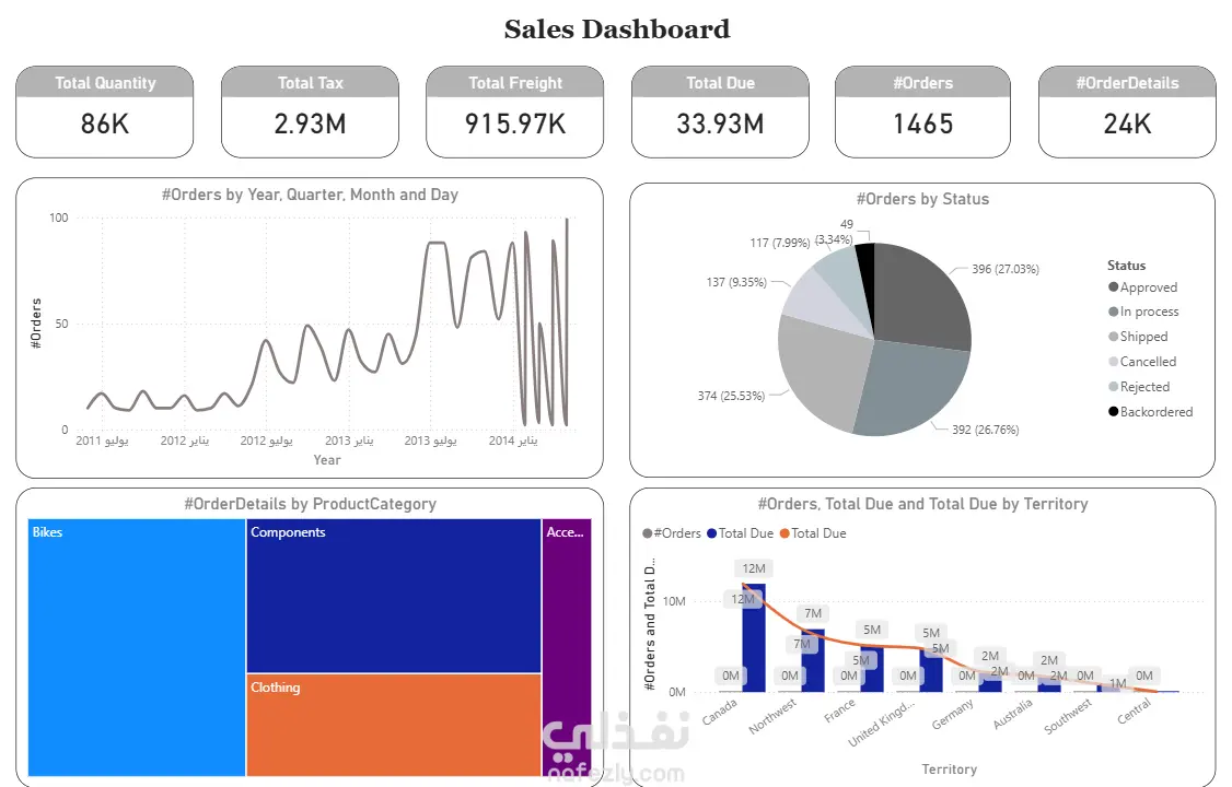 هذه الداشبورد تعرض تحليلًا شاملًا لأداء المبيعات، حيث تتضمن: