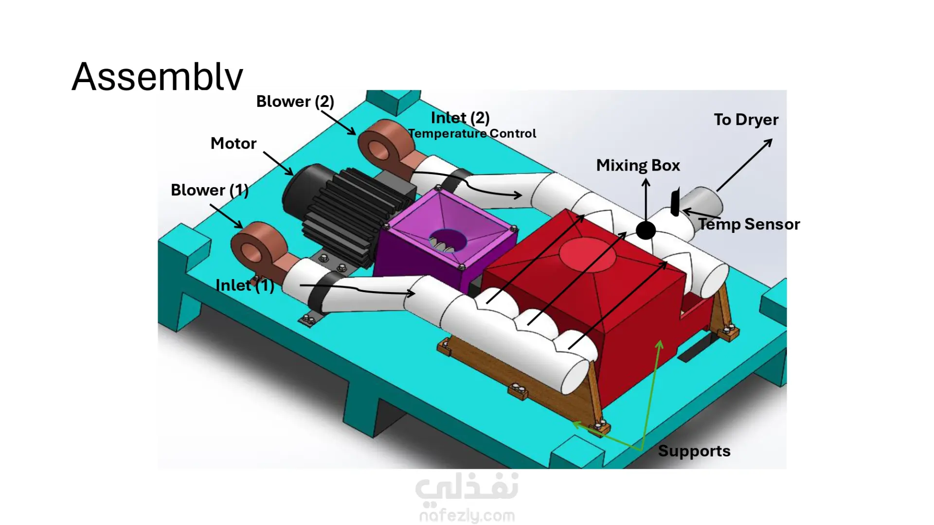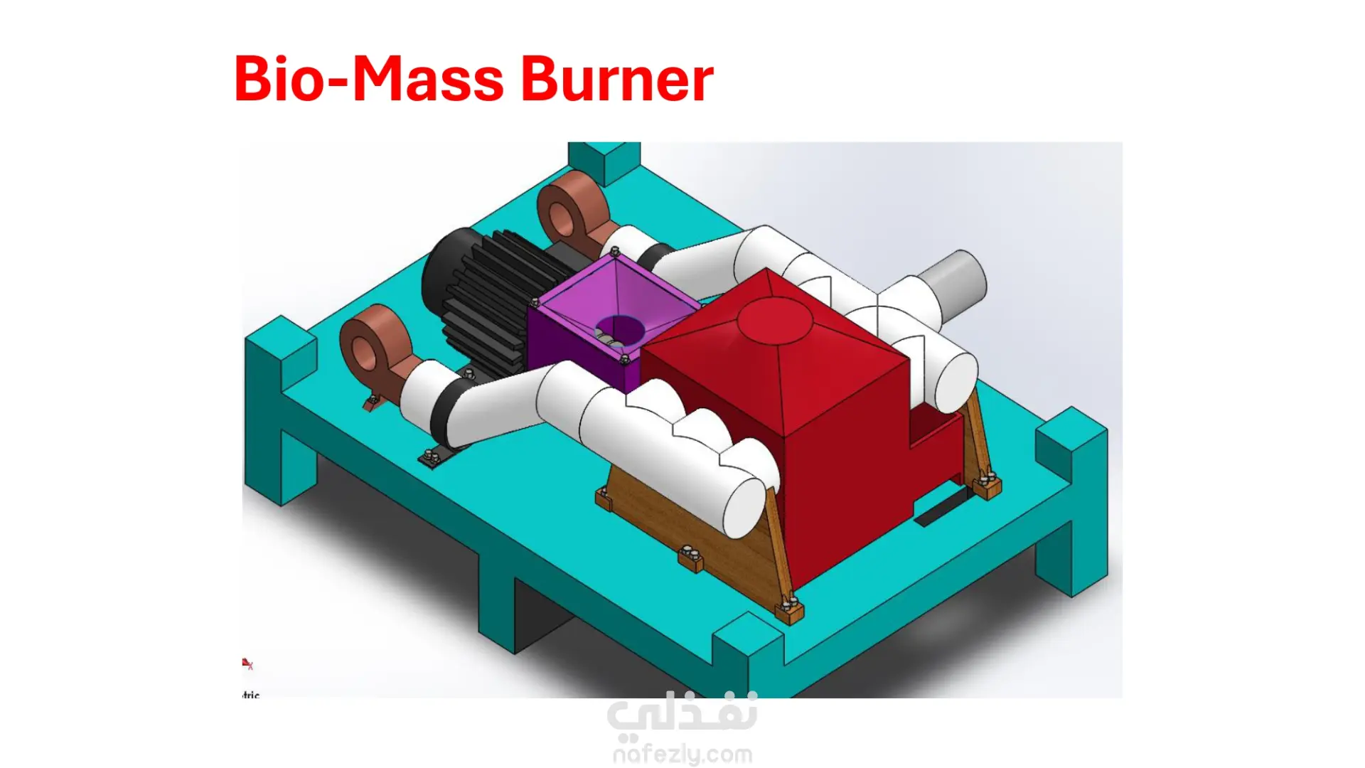 قمت بتصميم Biomass Burner باستخدام برنامج SolidWorks، بهدف تطوير نظام احتراق يعتمد على الوقود الحيوي كبديل اقتصادي وصديق للبيئة. بدأت بتحديد المتطلبات الوظيفية للتصميم، بما يشمل: كفاءة الاحتراق توزيع الهواء (Airflow) تقليل الفاقد الحراري سهولة التشغيل والصيانة ثم قمت بعمل تصميم ثلاثي الأبعاد كامل للـ Burner، متضمناً: غرفة الاحتراق (Combustion Chamber) نظام إدخال الوقود (Fuel Feeding System) فتحات توزيع الهواء (Air Inlets) مسار خروج الغازات (Exhaust System) تم مراعاة الجوانب الهندسية لضمان: تحسين كفاءة الاحتراق تقليل الانبعاثات تحقيق استقرار في عملية التشغيل بالإضافة إلى ذلك، قمت بإعداد عرض تقديمي احترافي باستخدام Microsoft PowerPoint لشرح: فكرة المشروع وأهميته مراحل التصميم مكونات النظام آلية العمل التطبيقات المحتملة يُظهر المشروع قدرتي على: استخدام برامج التصميم الهندسي ثلاثي الأبعاد تحويل الأفكار إلى نماذج عملية قابلة للتنفيذ شرح الأفكار التقنية بشكل منظم واحترافي