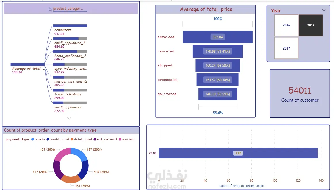اشتغلت على Data Analysis Project باستخدام Dataset من Kaggle (E-Commerce Olist)، وكان الهدف الأساسي إني أحول الداتا الخام إلى Insights واضحة تساعد في فهم سلوك العملاء والسوق.