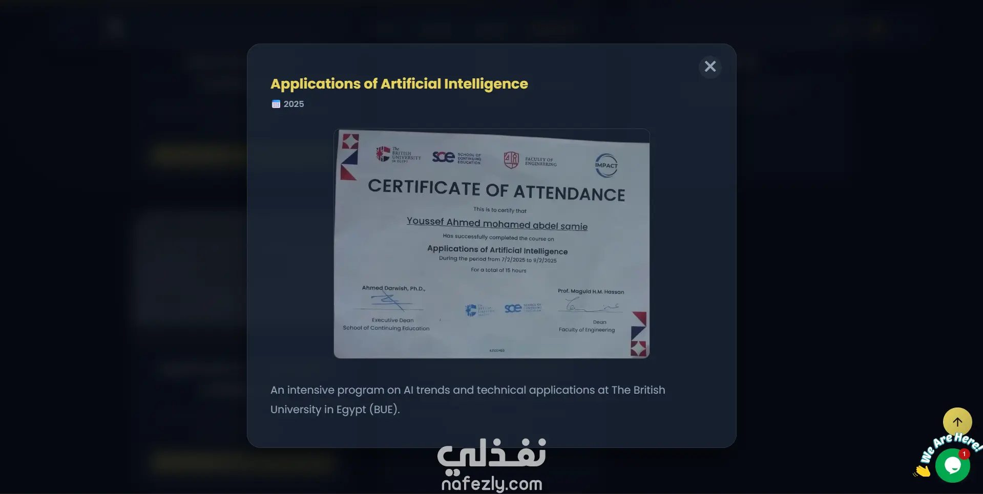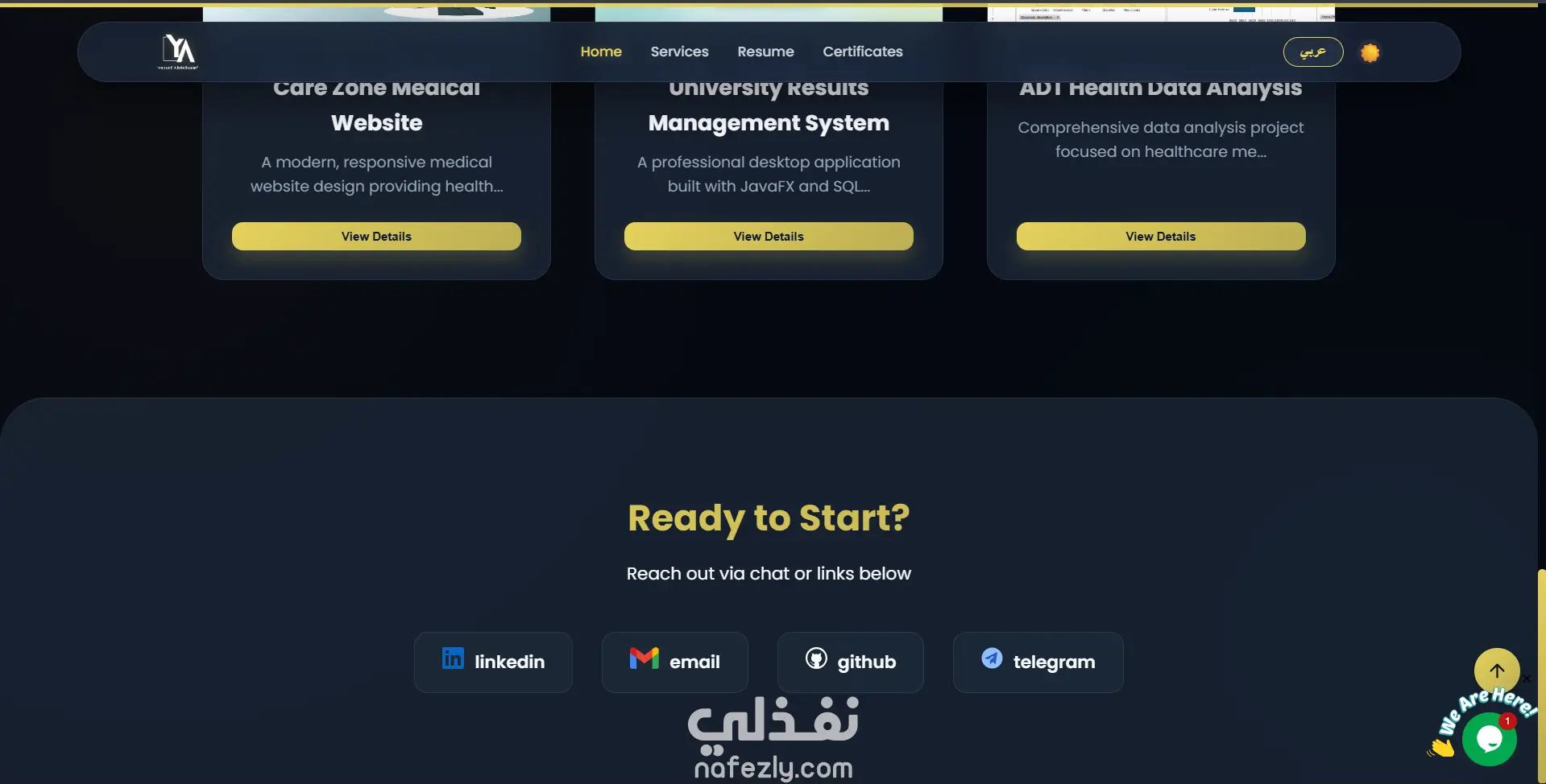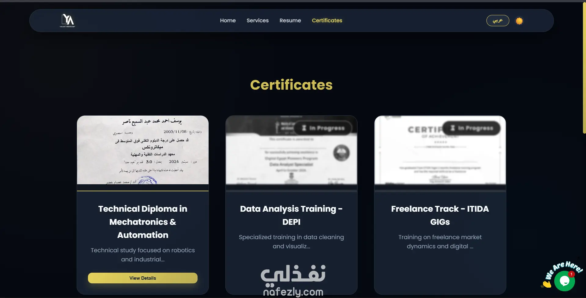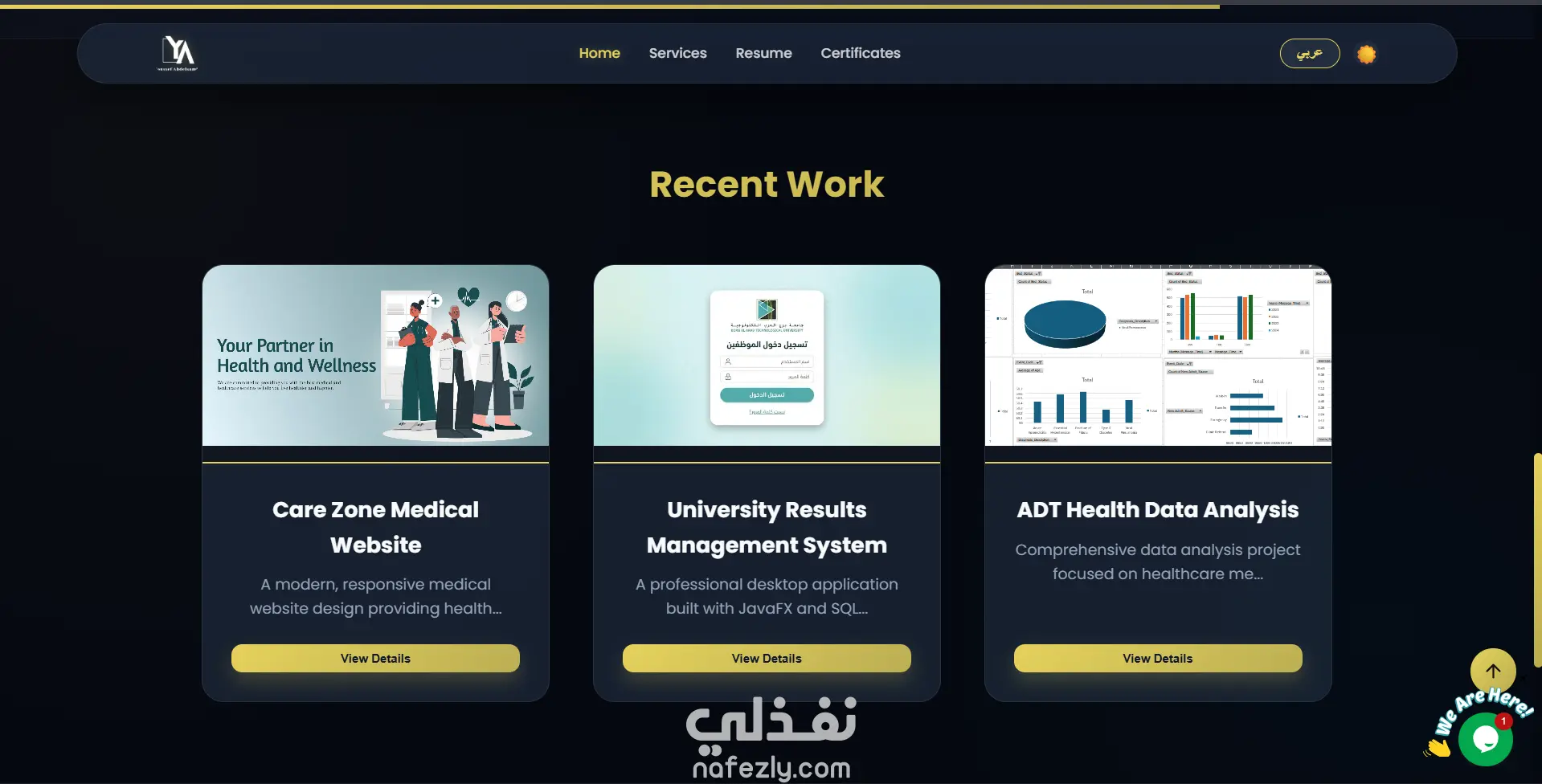 تصميم وتطوير موقع ويب شخصي (Portfolio) متكامل لعرض سابقة الأعمال، المهارات، والخدمات بشكل احترافي وجذاب. تم بناء الموقع ليكون بمثابة واجهة رقمية تعكس الهوية المهنية وتسهل تواصل العملاء. أبرز مميزات وخصائص الموقع: تصميم عصري وجذاب (UI/UX): واجهة مستخدم حديثة تضمن راحة العين وسلاسة التصفح. تجاوب كامل مع الشاشات (Responsive Design): الموقع يعمل بكفاءة وبشكل مثالي على جميع الأجهزة (الهواتف المحمولة، الأجهزة اللوحية، وشاشات الكمبيوتر). هيكلة منظمة للمحتوى: يحتوي على أقسام واضحة (من أنا، معرض المشاريع، المهارات التقنية، وطرق التواصل). كود نظيف وسريع (Clean Code & Performance): تم برمجة الموقع بأفضل الممارسات لضمان سرعة التحميل العالية والتوافق المبدئي مع محركات البحث (SEO).