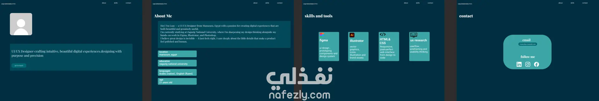 هذا الـ Portfolio يعرض مجموعة من أعمالي في مجال تصميم واجهات وتجربة المستخدم (UI/UX)، حيث أركز على تقديم تجارب رقمية تجمع بين البساطة، الوضوح، والكفاءة.