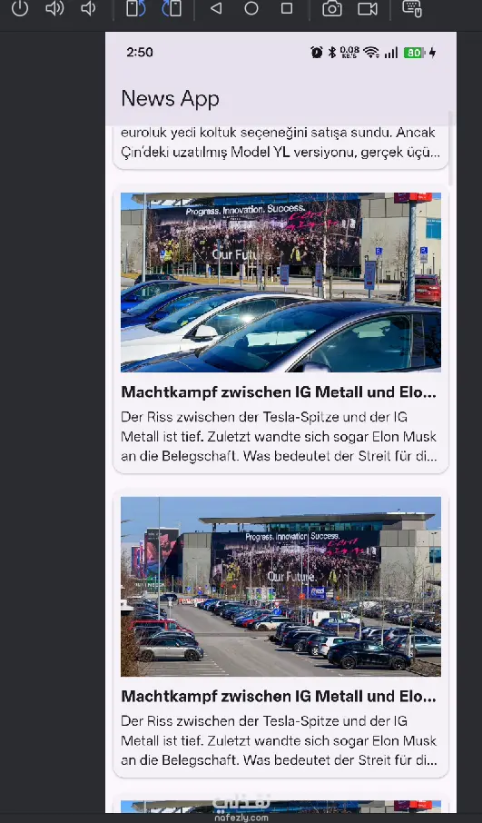 تطبيق News App هو تطبيق موبايل متكامل مبني بتقنية Flutter، مصمم لتقديم تجربة قراءة إخبارية مريحة واحترافية. يعرض التطبيق أحدث الأخبار من مصادر متنوعة مع إمكانية التصفية حسب التصنيف، ويتميز بواجهة مستخدم عصرية تدعم كلاً من Android وiOS من كود واحد. أبرز المميزات: عرض الأخبار في الوقت الفعلي عبر API تصنيف الأخبار حسب الفئات (رياضة، تكنولوجيا، سياسة...) واجهة مستخدم سلسة وسريعة الاستجابة دعم الوضع الليلي Dark Mode بنية كود نظيفة قابلة للتوسع
